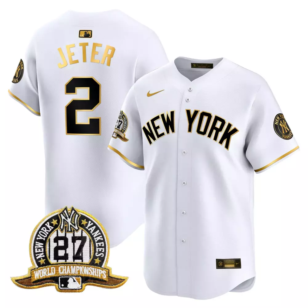 Derek Jeter Yankees 27 Time Champions Patch Vapor Premier Jersey | White Alternate Stitched Limited Edition | Fan Gear for Men, Women & Youth;Derek Jeter Yankees 27-Time Champions Men’s White Gold Jersey | Limited Edition Fan Gear | For Men, Women & Youth;Derek Jeter Yankees 27-Time Champions Men’s White Gold Jersey | Limited Edition V2 | For Men, Women & Youth;Derek Jeter Yankees 27-Time Champions Patch Jersey | Vapor Premier Limited Edition | For Men, Women & Youth;Derek Jeter Yankees American Style 2024 World Series Vapor Premier Limited Jersey | White Stitched Women’s Fan Gear | For Men, Women & Youth