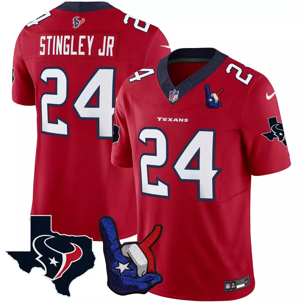 Derek Stingley Jr. Houston Texans Red Color Rush Legend Vapor Jersey | All Stitched | Fan Gear for Men, Women & Youth;Derek Stingley Jr. Houston Texans Red Color Rush Legend Vapor Jersey V2 | All Stitched | Game Day Outfit for Men, Women & Youth;Derek Stingley Jr. Houston Texans Red DJ Screw Vapor Limited Jersey | All Stitched | Fan Gear for Men, Women & Youth;Derek Stingley Jr. Houston Texans Red Gold Trim Vapor Jersey | All Stitched | Gift Idea for Men, Women & Youth;Derek Stingley Jr. Houston Texans Red Hand Sign Vapor Jersey | All Stitched | Game Day Outfit for Men, Women & Youth