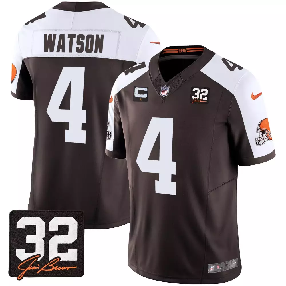 Deshaun Watson 4 Cleveland Browns 2023 Stitched Vapor Jersey | Black 32 Patch Home Edition | Fan Gear for Men, Women & Youth;Deshaun Watson 4 Cleveland Browns 2023 Stitched Vapor Jersey | Black Gold Home Edition | Fan Gear for Men, Women & Youth;Deshaun Watson 4 Cleveland Browns 2023 Stitched Vapor Jersey | Brown 32 Edition | Fan Gear for Men, Women & Youth;Deshaun Watson 4 Cleveland Browns 2023 Stitched Vapor Jersey | Brown 32 Edition | Game Day Outfit for Men, Women & Youth;Deshaun Watson 4 Cleveland Browns 2023 Stitched Vapor Jersey | Brown 32 Patch | Limited Edition Fan Gear for Men, Women & Youth