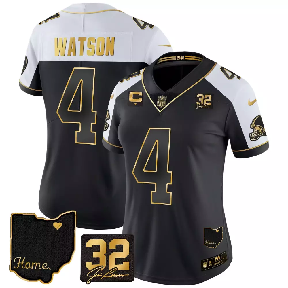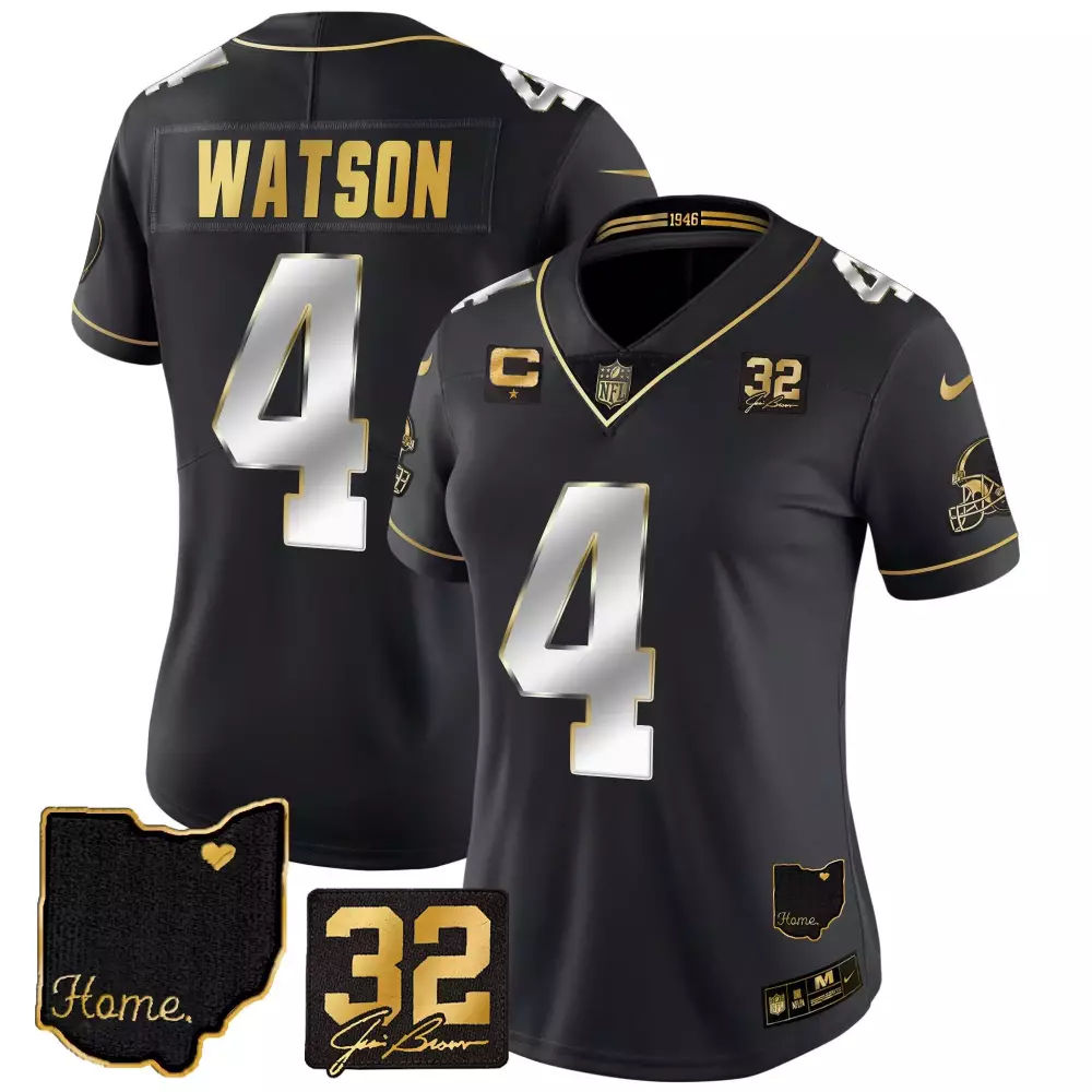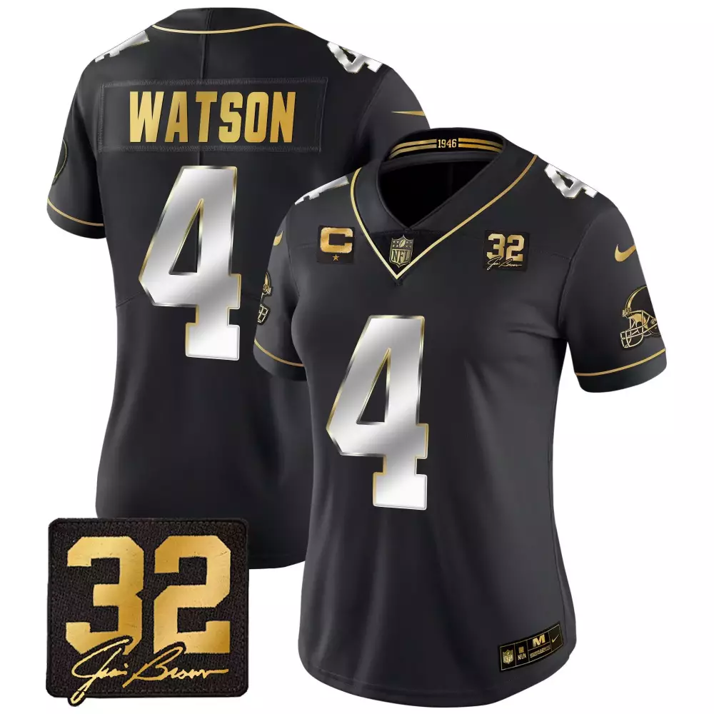 Deshaun Watson Women’s Cleveland Browns Black Jersey | Stitched Jim Brown Memorial Home Patch | For Men, Women & Youth;Deshaun Watson Women’s Cleveland Browns Black Jersey | Stitched Jim Brown Memorial Patch | For Men, Women & Youth;Deshaun Watson Women’s Cleveland Browns Black Limited Jersey | Stitched Jim Brown Memorial Patch | For Men, Women & Youth;Deshaun Watson Women’s Cleveland Browns Black Limited Jersey | Stitched Jim Brown Memorial Patch | For Men, Women & Youth;Deshaun Watson Women’s Cleveland Browns Gold Jersey | Stitched Jim Brown Memorial Patch | Alternate Style | For Men, Women & Youth