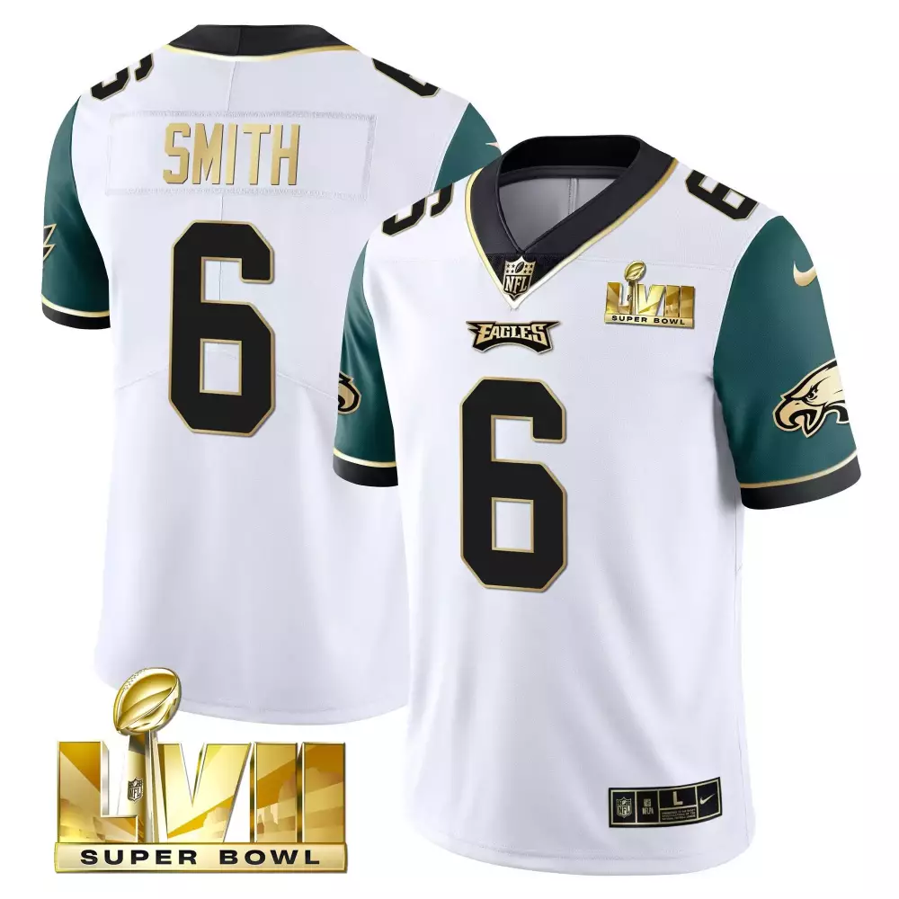 Devonta Smith Eagles Midnight Green Sleeves Super Bowl Vapor Gold Jersey | Stitched Fan Gear | For Men, Women & Youth