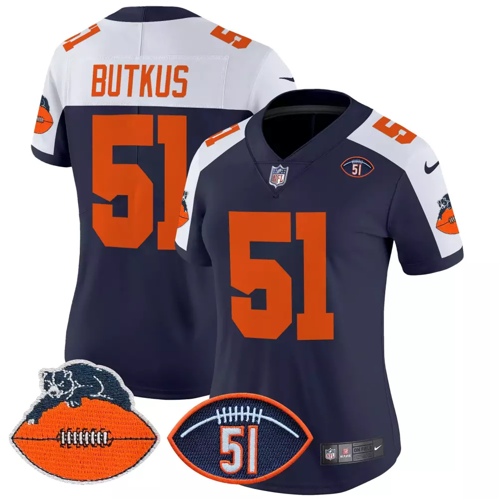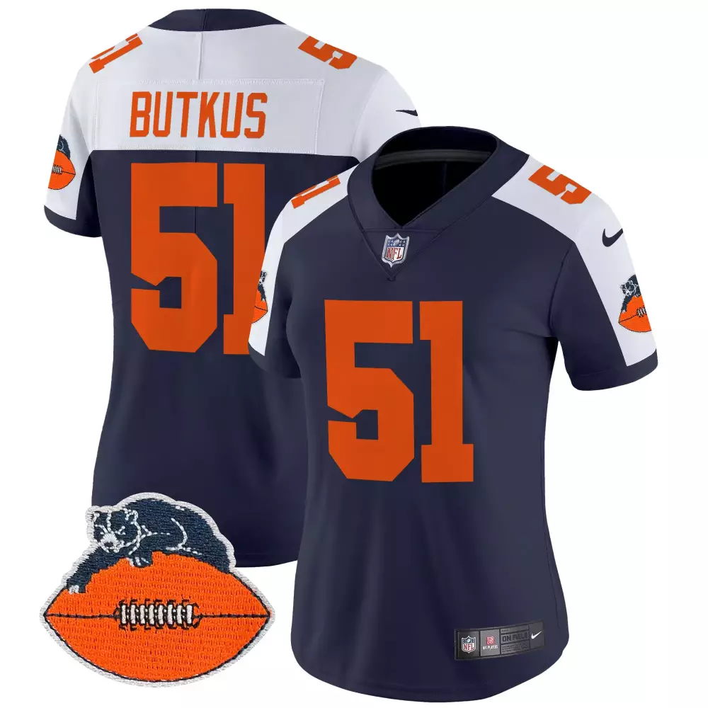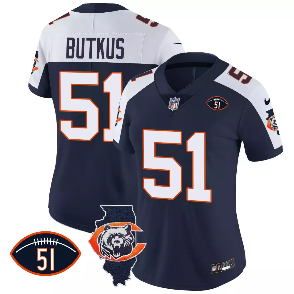 Dick Butkus Chicago Bears Navy Alternate Women’s Illinois Patch Vapor Jersey | All Stitched Fan Gear | For Women, Men & Youth