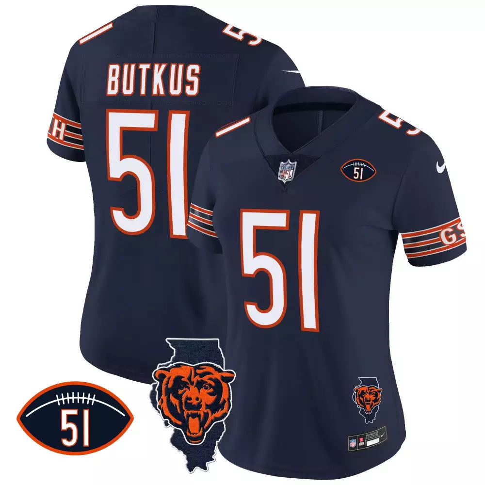 Dick Butkus Chicago Bears Women’s Illinois Patch Vapor Jersey | Navy | All Stitched | Fan Gear | For Women