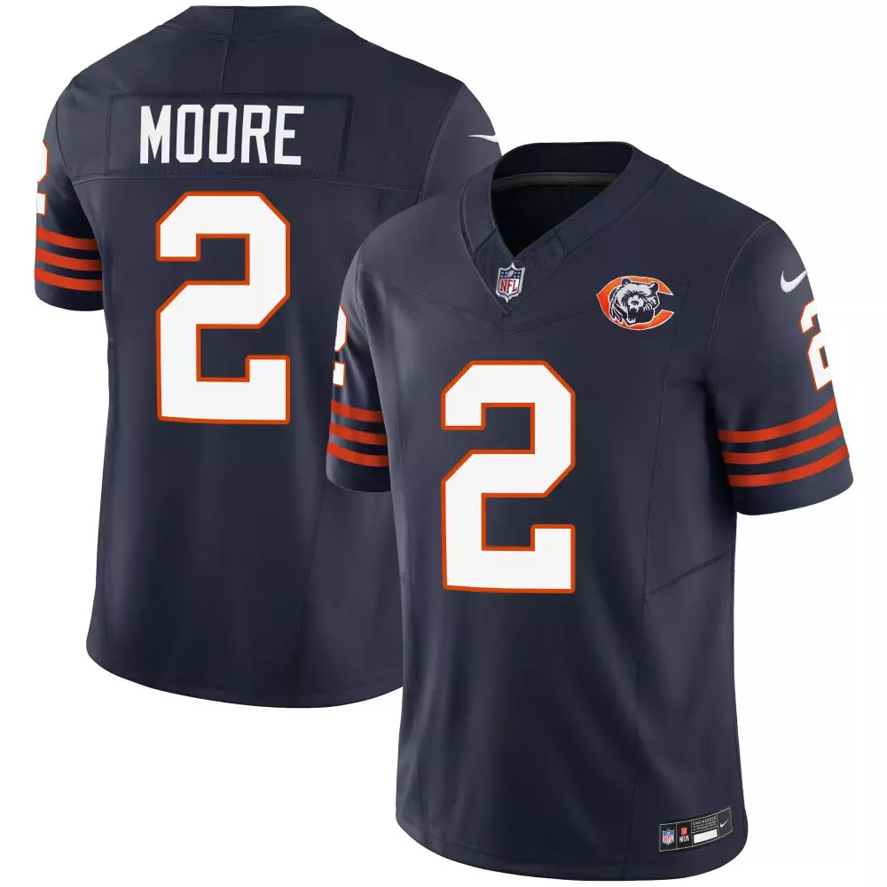 DJ Moore Chicago Bears Navy Throwback Illinois Patch Vapor Jersey | All Stitched | Replica Fan Gear for Men, Women & Youth
