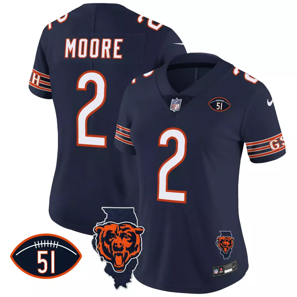 DJ Moore Chicago Bears Navy Throwback Illinois Patch Vapor Jersey | All Stitched | Replica Fan Gear for Men, Women & Youth;DJ Moore Chicago Bears Navy Throwback Vapor Jersey | All Stitched | Game Day Outfit for Men, Women & Youth;DJ Moore Chicago Bears Navy Throwback Vapor Jersey | All Stitched | Limited Edition Fan Gear for Men, Women & Youth;DJ Moore Chicago Bears Navy Women’s Dick Butkus Patch Throwback Vapor Limited Jersey | All Stitched | Game Day Outfit for Women;DJ Moore Chicago Bears Navy Women’s Illinois Patch Vapor Jersey | All Stitched | Fan Gear for Women