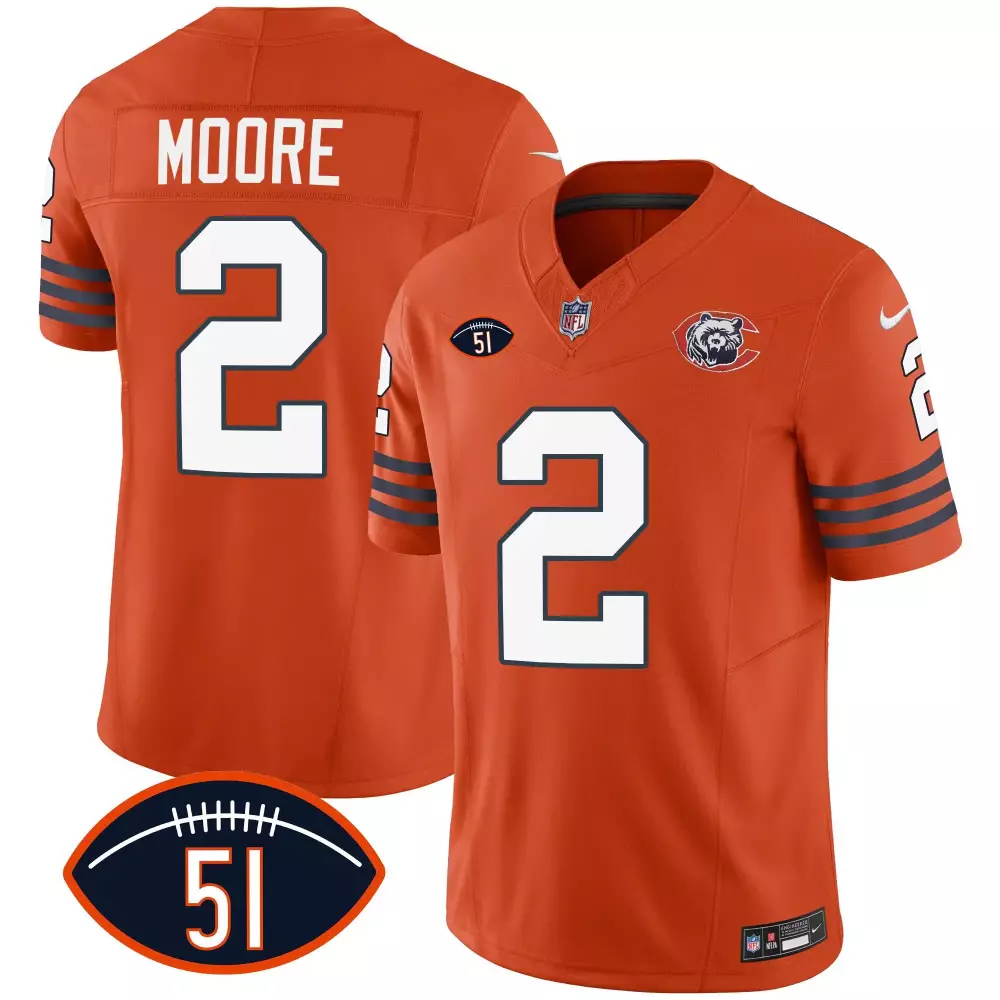 DJ Moore Chicago Bears Throwback Game Jersey | Orange Stitched Design | Replica Fan Gear | For Men, Women & Youth;DJ Moore Chicago Bears Throwback Gold Vapor Limited Jersey | Stitched Fan Gear for Men, Women & Youth;DJ Moore Chicago Bears Throwback Jersey | Orange Stitched Dick Butkus Patch | Limited Edition Fan Gear | For Men, Women & Youth;DJ Moore Chicago Bears Throwback Vapor Jersey | Orange Stitched Design | Replica Fan Gear | For Men, Women & Youth;DJ Moore Chicago Bears Throwback Vapor Jersey | Orange Stitched Illinois Patch | Limited Edition Fan Gear | For Men, Women & Youth