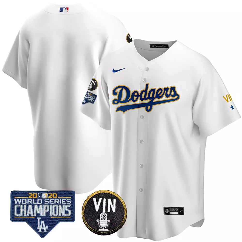 Dodgers Team Cool White Men’s World Series Jersey | Vin Scully Patch Gold Edition | All Stitched Fan Gear | For Men, Women & Youth