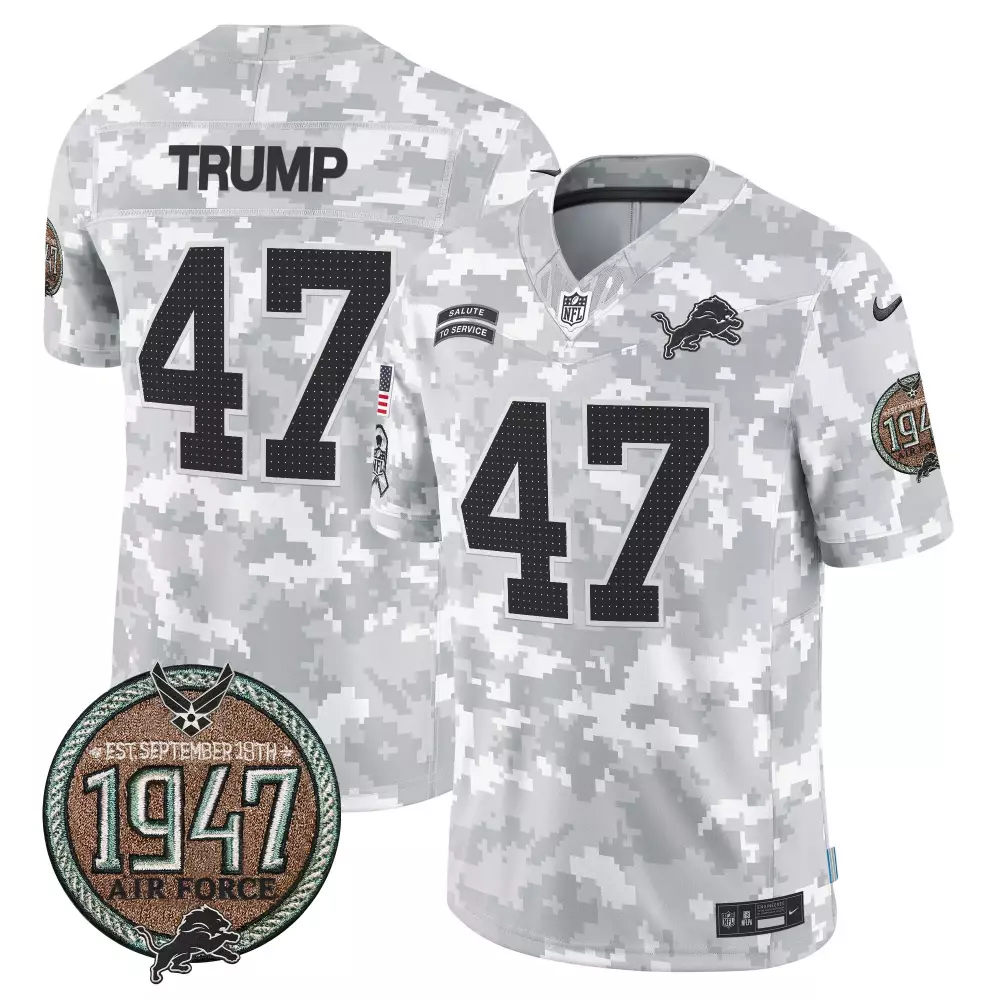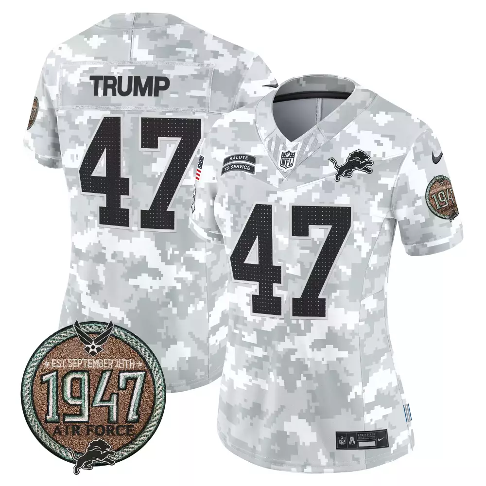Donald Trump 2024 Detroit Lions Women’s White Vapor Limited Jersey | NFC North Champions Gold Trim Patch | All Stitched Fan Gear | For Men, Women & Youth;Donald Trump 2024 Detroit Lions Women’s White Vapor Limited Jersey | NFC North Champions Patch | All Stitched Fan Gear | For Men, Women & Youth;Donald Trump 2024 Detroit Lions Youth Vapor Limited Jersey | Salute to Service Arctic Camo Patch | All Stitched Fan Gear | For Men, Women & Youth;Donald Trump Air Force Men’s Detroit Lions 2024 Vapor Jersey | Salute to Service Establishment Year Patch | Limited Edition | For Men;Donald Trump Air Force Women’s Detroit Lions 2024 Vapor Jersey | Salute to Service Establishment Year Patch | Limited Edition | For Women