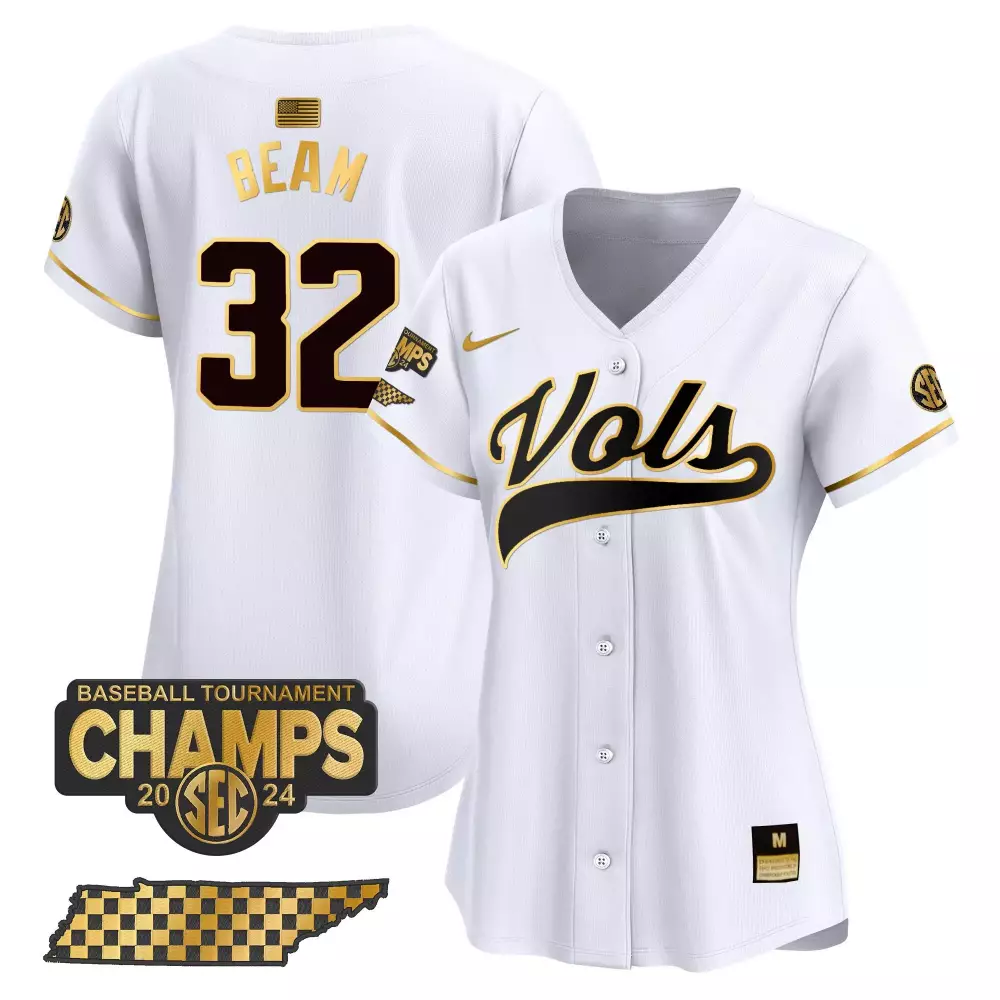 Drew Beam Tennessee Volunteers 2024 Champions Jersey | White Gold Vapor Premier | Limited Edition Fan Gear for Men, Women & Youth