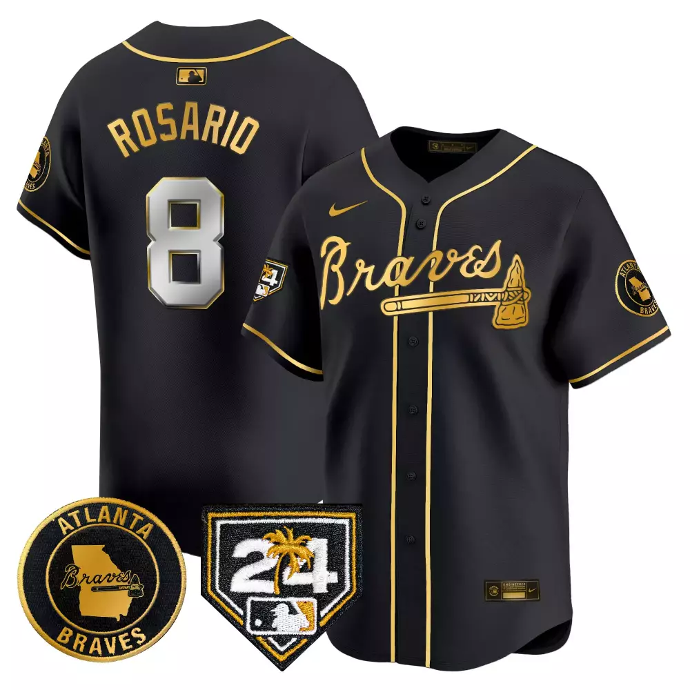 Eddie Rosario 8 Atlanta Braves Black 2024 Spring Training All Stitched Jersey | Name Patch | For Men, Women & Youth