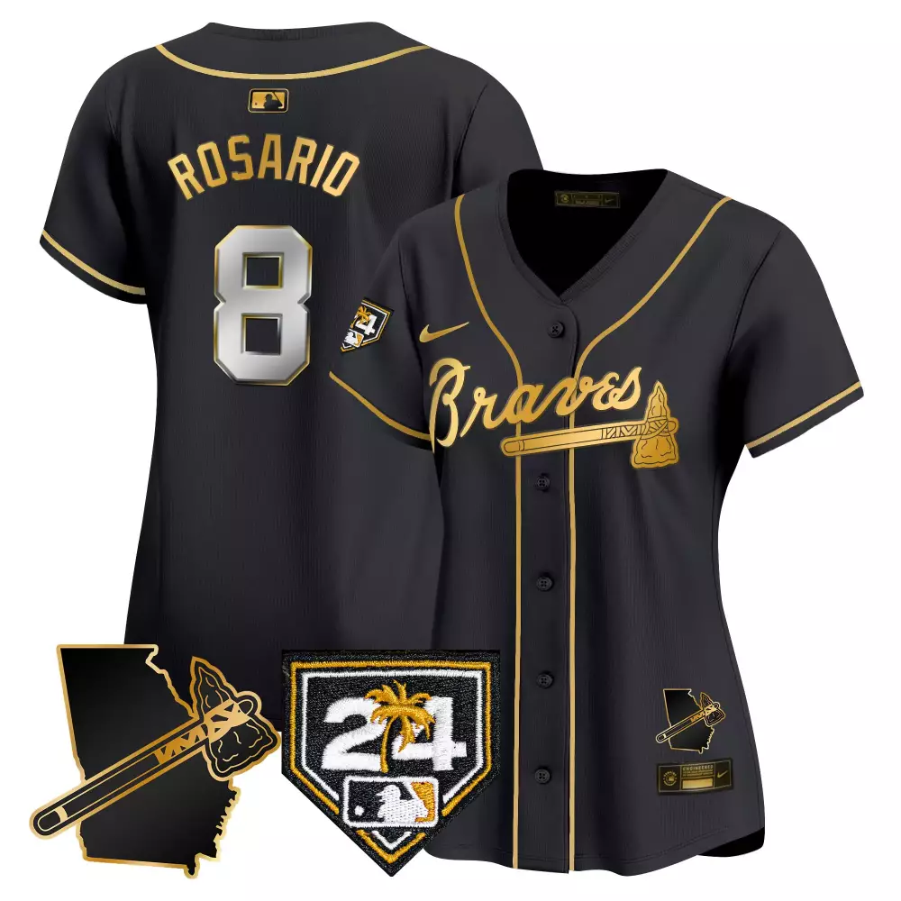 Eddie Rosario 8 Atlanta Braves Black 2024 Spring Training All Stitched Jersey | Name Patch | For Men, Women & Youth;Eddie Rosario 8 Atlanta Braves Black Women’s Stitched Jersey | Name Patch 2024 | For Men, Women & Youth;Eddie Rosario Atlanta Braves 150th Champions Black Gold Jersey | Vapor Premier Limited Edition | For All Fans;Eddie Rosario Atlanta Braves 2023 City Connect Cool Base Jersey | Stitched | Fan Gear for Women | For Men, Women & Youth;Eddie Rosario Atlanta Braves 2023 City Connect Cool Base Jersey | Stitched | Youth Fan Gear | For Men, Women & Youth