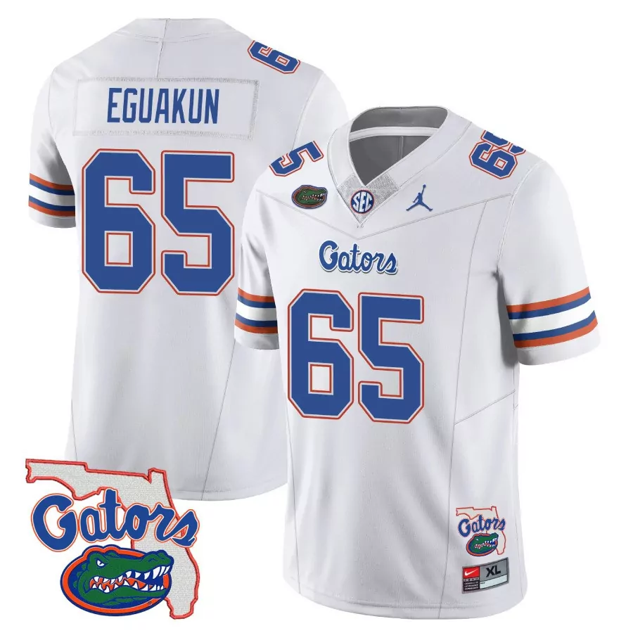 Eguakun 65 Florida Gators 2023 Stitched Vapor Jersey | White Fan Gear for Men, Women & Youth