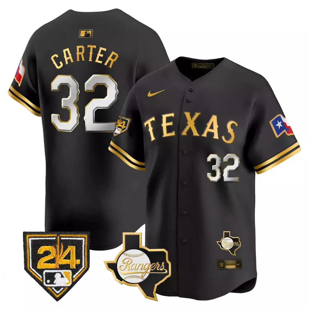Evan Carter Texas Rangers 2024 Spring Training Black Gold Jersey | Stitched Vapor Premier | Limited Edition Fan Gear | For Men, Women & Youth