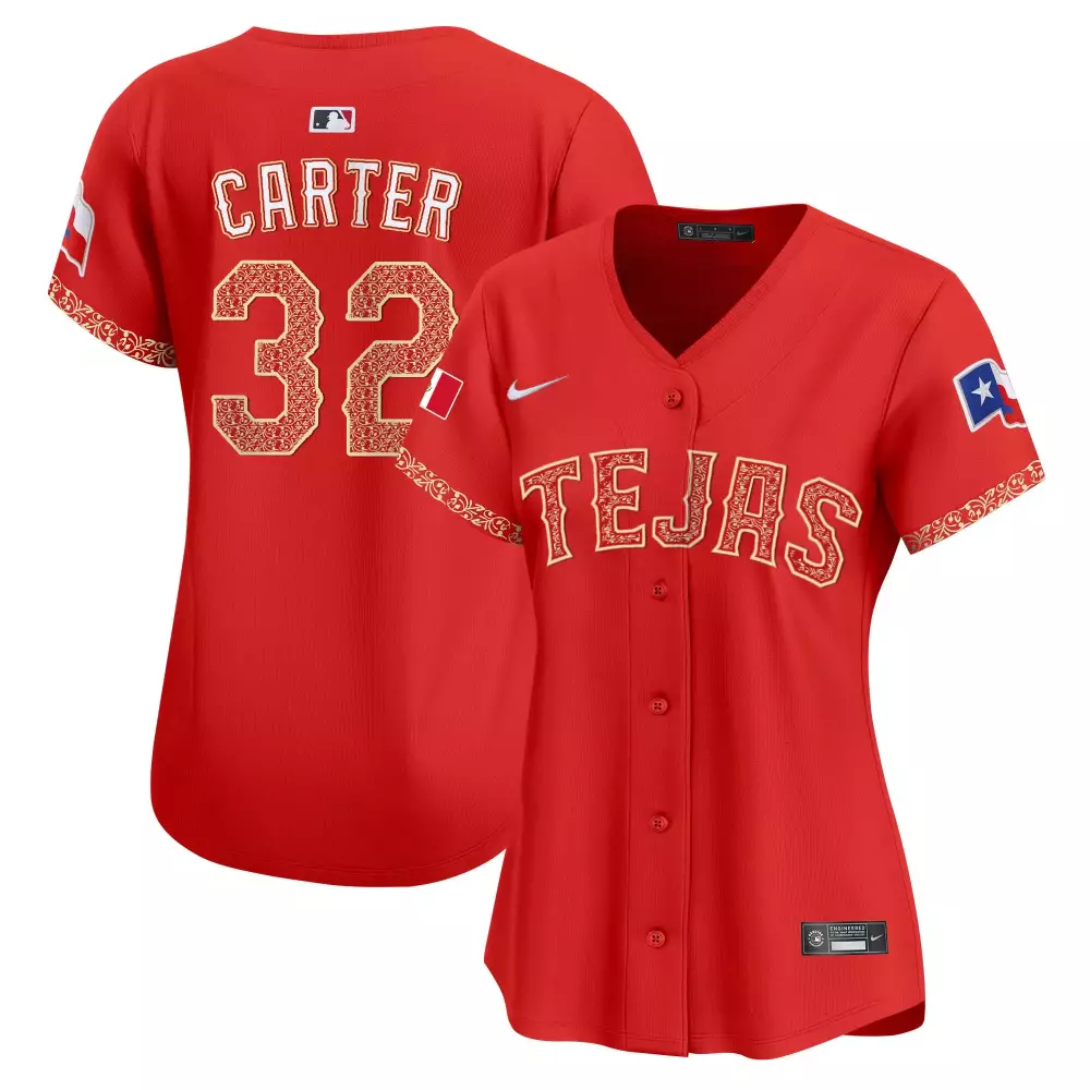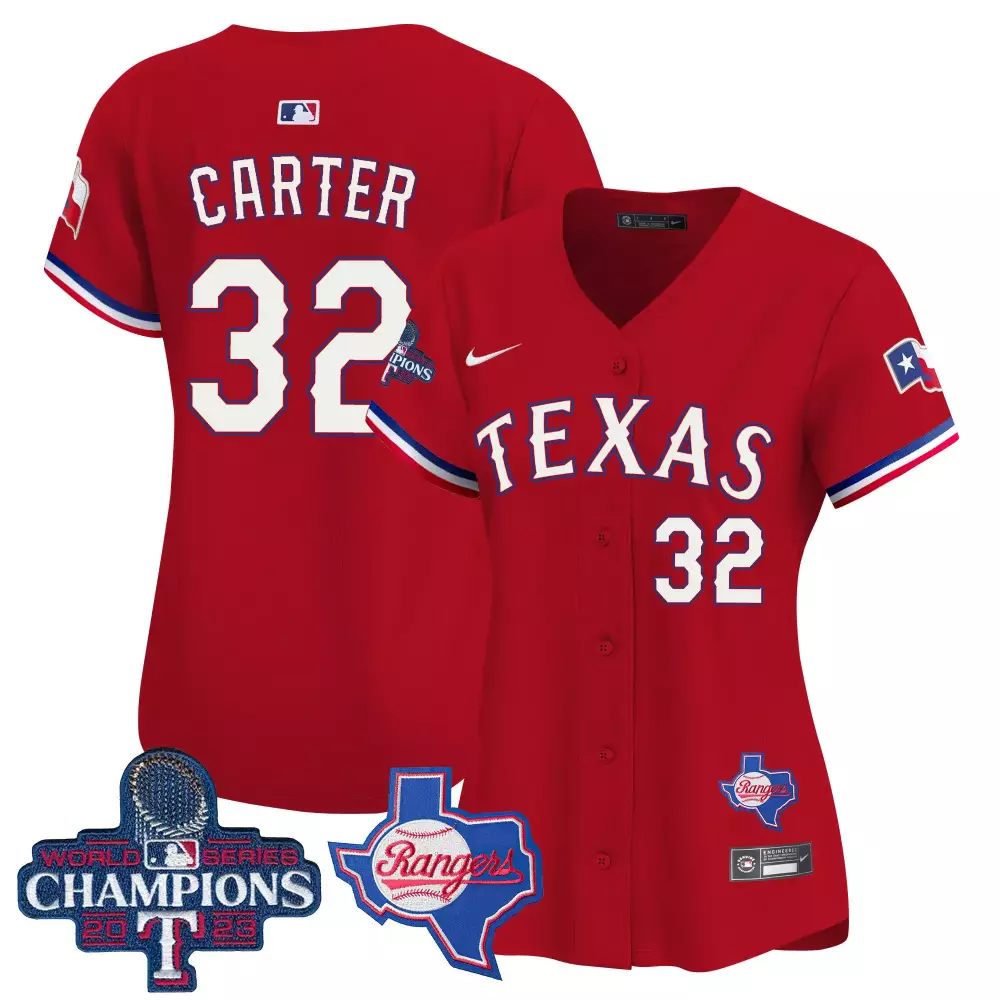 Evan Carter Texas Rangers Red Vapor Premier Limited Jersey with Texas Patch | All Stitched Style | Fan Gear for All | For Men, Women & Youth;Evan Carter Texas Rangers Red Women’s Stitched Vapor Jersey 2023 World Series Champions | Limited Edition Fan Gear | For Women & Youth;Evan Carter Texas Rangers Red Women’s Stitched Vapor Limited Jersey 2023 Champions | Fan Gear for All | For Women & Youth;Evan Carter Texas Rangers Red Women’s Vapor Limited Jersey | Fan Gear for All | For Women & Youth;Evan Carter Texas Rangers Throwback 1972 Limited Edition Jersey | White Gold Vapor Premier for Men, Women & Youth