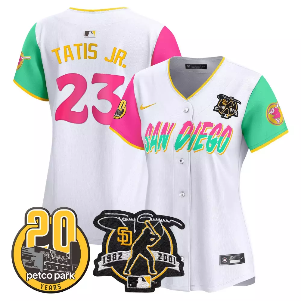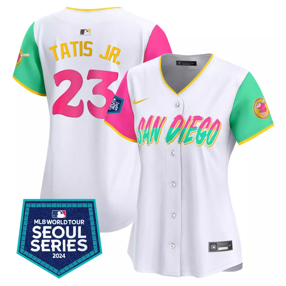 Fernando Tatis Jr. 2024 City Connect Women’s Padres Jersey | Tony Gwynn Faithful Patch | Limited Edition Vapor Premier | For Men, Women & Youth;Fernando Tatis Jr. 2024 City Connect Women’s Padres Jersey | Tony Gwynn Petco Park 20th Patch | Limited Edition Vapor Premier | For Men, Women & Youth;Fernando Tatis Jr. 2024 City Connect Women’s Padres Jersey | World Tour Seoul Series Patch | Limited Edition Fan Gear | For Men, Women & Youth;Fernando Tatis Jr. 2024 Color Sleeves Men’s Padres Jersey | San Diego City Style | Limited Edition Vapor Premier | For Men, Women & Youth;Fernando Tatis Jr. 2024 Color Sleeves Men’s Padres Jersey | San Diego City Style V2 | Limited Edition Vapor Premier | For Men, Women & Youth
