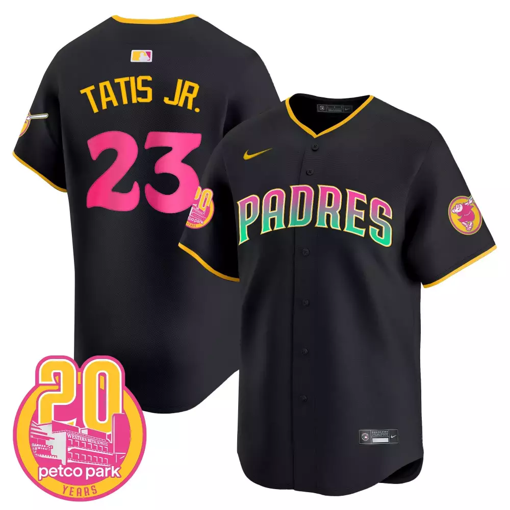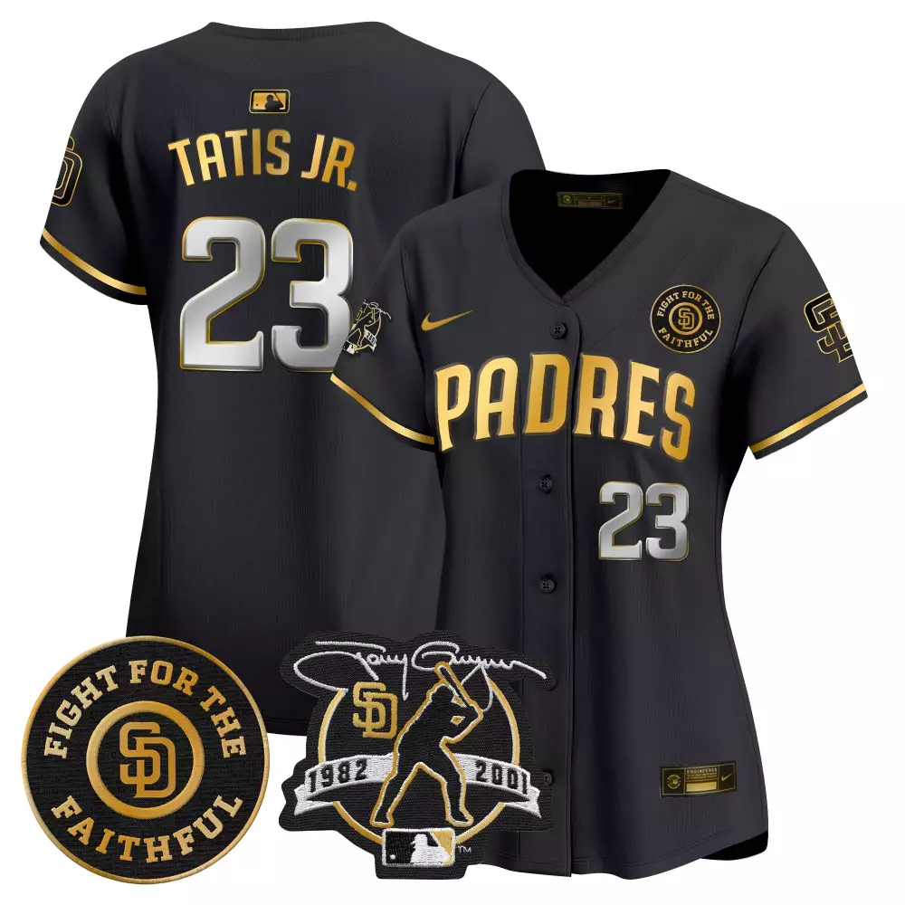 Fernando Tatis Jr. Black Gold Women’s Padres 2024 Tony Gwynn Limited Jersey | Stitched Fan Gear for Men, Women & Youth;Fernando Tatis Jr. Black Gold Women’s Padres 2024 World Tour Limited Jersey | Stitched Fan Gear for Men, Women & Youth;Fernando Tatis Jr. Black Gold Women’s Padres Tony Gwynn Limited Jersey | Stitched Fan Gear for Men, Women & Youth;Fernando Tatis Jr. Black Men’s Padres 2024 San Diego City Style Jersey | Stitched Fan Gear for Men, Women & Youth;Fernando Tatis Jr. Black Men’s Padres Armed Forces Day Limited Jersey | Stitched Fan Gear for Men, Women & Youth