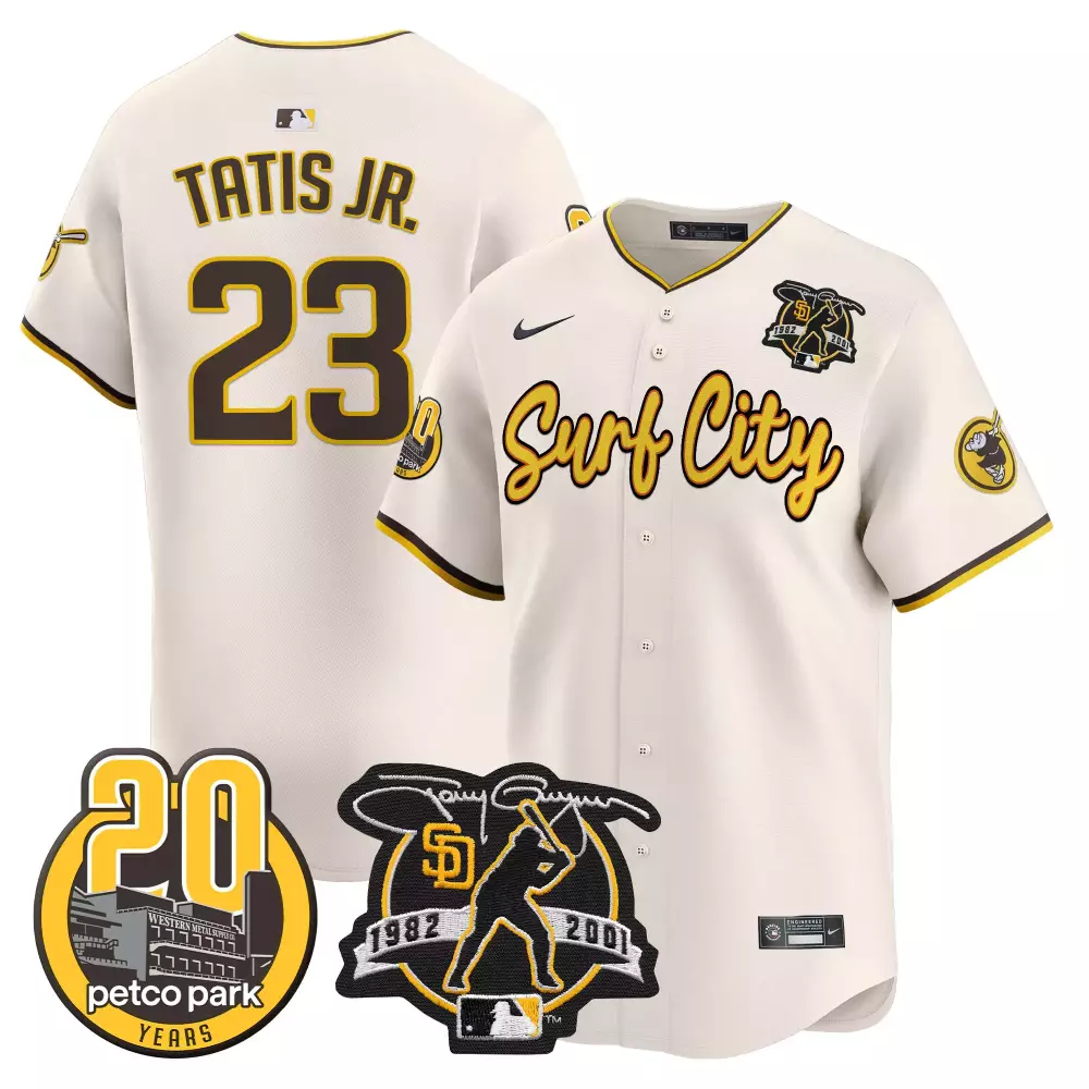 Fernando Tatis Jr. Cream Men’s Padres Jersey | Tony Gwynn Petco Park 20th Patch | Limited Edition Vapor Premier | For Men, Women & Youth