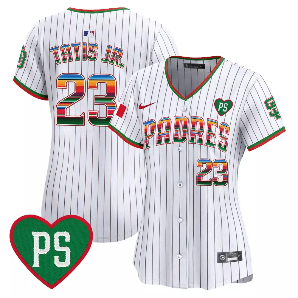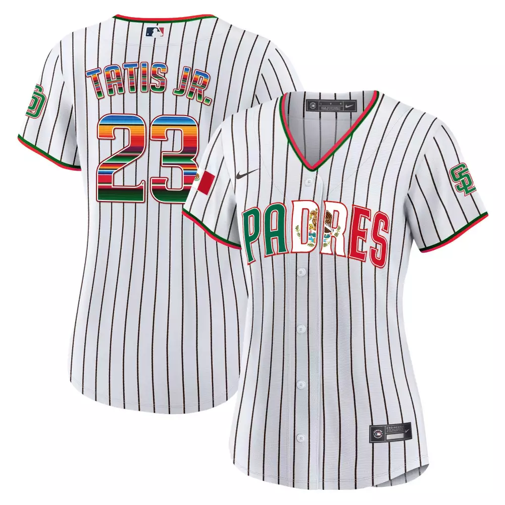 Fernando Tatis Jr. Pinstripe Women’s San Diego Padres Mexico Cool Base V2 Jersey | Limited Edition | Fan Gear for Men, Women & Youth;Fernando Tatis Jr. Pinstripe Women’s San Diego Padres Mexico for Peter Patch Jersey | Limited Edition Vapor Premier | Fan Gear for Men, Women & Youth;Fernando Tatis Jr. Pinstripe Women’s San Diego Padres Mexico Premier Jersey | Limited Edition | Fan Gear for Men, Women & Youth;Fernando Tatis Jr. Red Men’s San Diego Padres 2024 Independence Day Jersey | Limited Edition Vapor Premier | Fan Gear for Men, Women & Youth;Fernando Tatis Jr. Red Men’s San Diego Padres Dominican Republic Jersey | Limited Edition Vapor Premier | Fan Gear for Men, Women & Youth