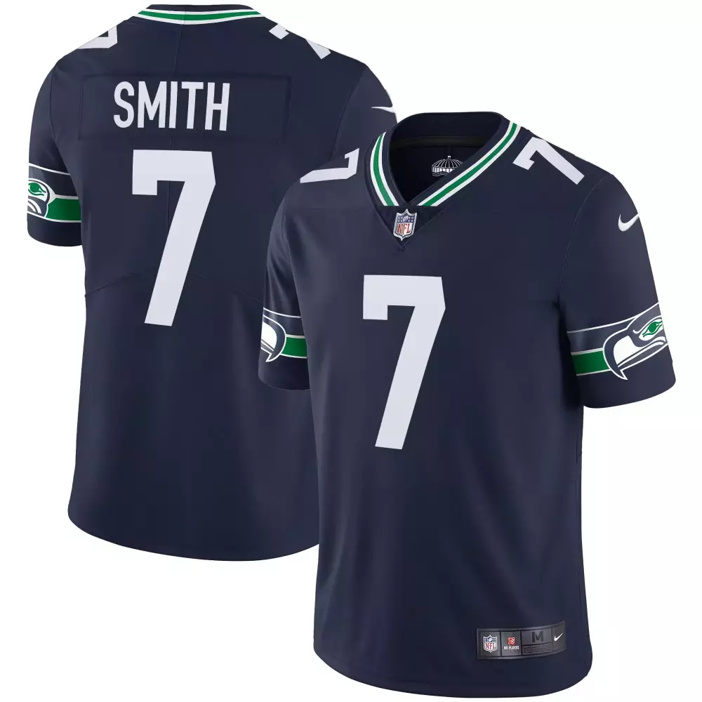 Geno Smith Seattle Seahawks Navy PGA Patch Vapor Jersey | Stitched Limited Edition Fan Gear for Men, Women & Youth;Geno Smith Seattle Seahawks Navy Throwback Gold Jersey V2 | Stitched Limited Edition Fan Gear for Men, Women & Youth;Geno Smith Seattle Seahawks Navy Throwback Gold Vapor Jersey V2 | Stitched Limited Edition for Men, Women & Youth;Geno Smith Seattle Seahawks Navy Women’s 2024 City Patch Vapor Jersey | Stitched Limited Edition for Men, Women & Youth;Geno Smith Seattle Seahawks Nike 50th Season Vapor F U S E Limited Jersey | College Navy | For Men, Women & Youth