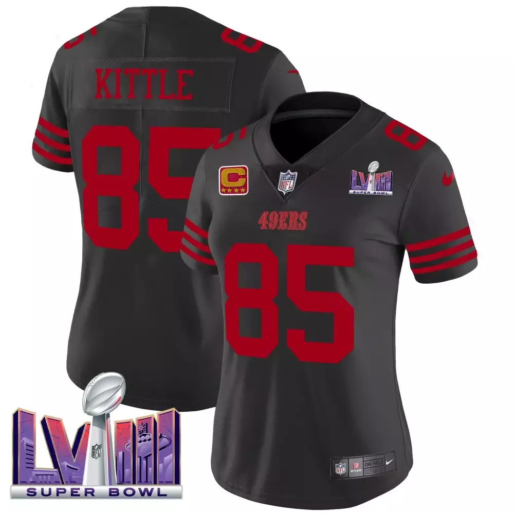 George Kittle Black Scarlet Women’s 49ers Jersey | Golden Gate Bridge Patch | Stylish Fan Gear for Men, Women & Youth;George Kittle Black Scarlet Women’s 49ers Jersey | Levi’s Stadium 10th Season Patch | Stylish Fan Gear for Men, Women & Youth;George Kittle Black Scarlet Women’s 49ers Jersey | Super Bowl LVIII Patch | Stylish Fan Gear for Men, Women & Youth;George Kittle Black Scarlet Youths 49ers Jersey | Golden Gate Bridge Patch | Stylish Fan Gear for Men, Women & Youth;George Kittle Black Women’s 49ers Jersey | Super Bowl LVIII Patch | Stylish Fan Gear for Men, Women & Youth
