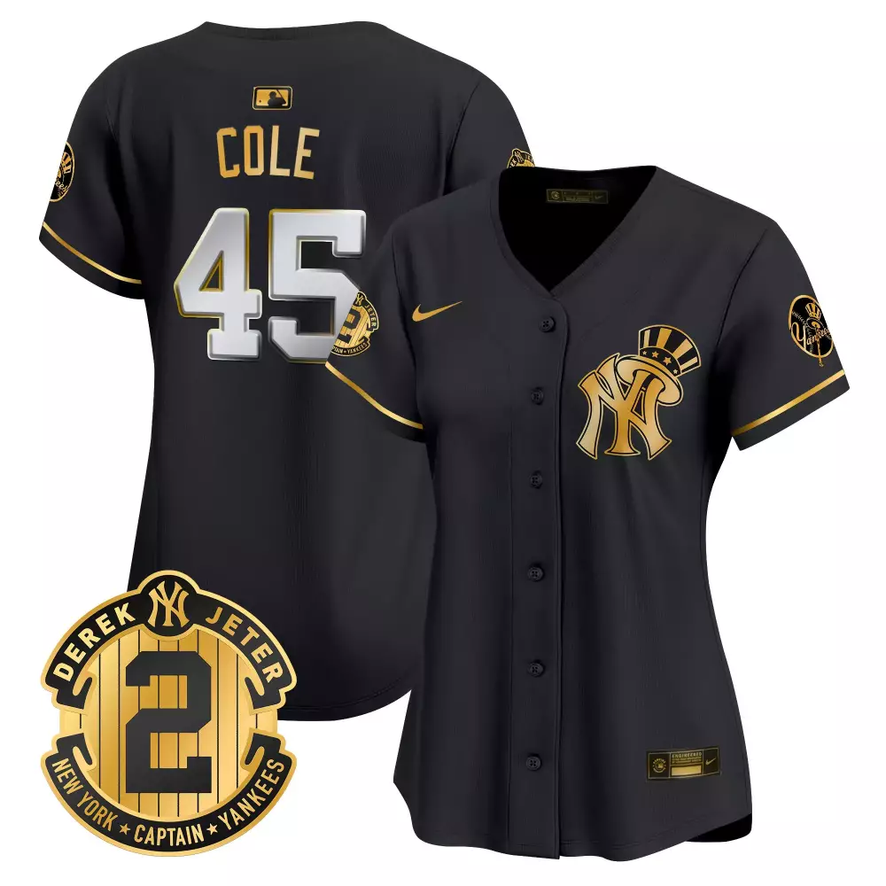 Gerrit Cole Black Gold Women’s Yankees Derek Jeter Patch Jersey | Stitched Vapor Premier Limited Edition | Fan Gear for Men, Women & Youth;Gerrit Cole Black Gold Women’s Yankees Derek Jeter Patch Jersey V2 | Stitched Vapor Premier Limited Edition | Fan Gear for Men, Women & Youth;Gerrit Cole Black Gold Yankees 1999 Throwback Jersey | Vapor Premier Limited Edition | Custom Stitched Fan Gear | For Men, Women & Youth;Gerrit Cole Black Gold Yankees 2024 Jackie Robinson Jersey | Vapor Premier Limited Edition | Custom Stitched Fan Gear | For Men, Women & Youth;Gerrit Cole Black Gold Yankees 2024 Jackie Robinson Women’s Jersey | Vapor Premier Limited Edition | Custom Stitched Fan Gear | For Men, Women & Youth