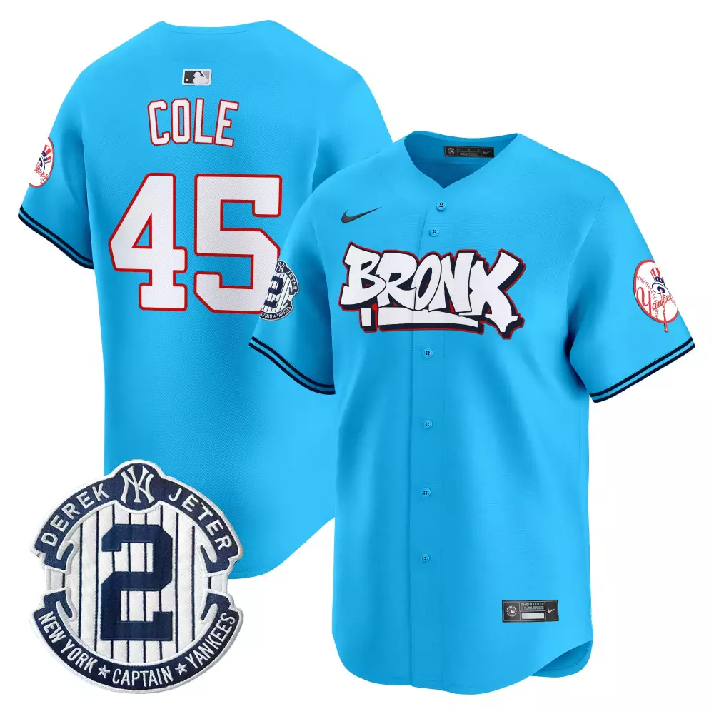 Gerrit Cole Light Blue Yankees Jersey V2 | Derek Jeter Patch Vapor Premier Limited Edition | Fan Gear for Men, Women & Youth;Gerrit Cole Light Blue Yankees Jersey V2 | Graffiti Vapor Premier Limited Edition | Fan Gear for Men, Women & Youth;Gerrit Cole Light Blue Yankees Jersey V3 | Bronx Graffiti Vapor Premier Limited Edition | Fan Gear for Men, Women & Youth;Gerrit Cole Light Blue Yankees Jersey V4 | Bronx Graffiti Vapor Premier Limited Edition | Fan Gear for Men, Women & Youth;Gerrit Cole Light Blue Yankees Jersey V7 | Bronx Graffiti Vapor Premier Limited Edition | Fan Gear for Men, Women & Youth
