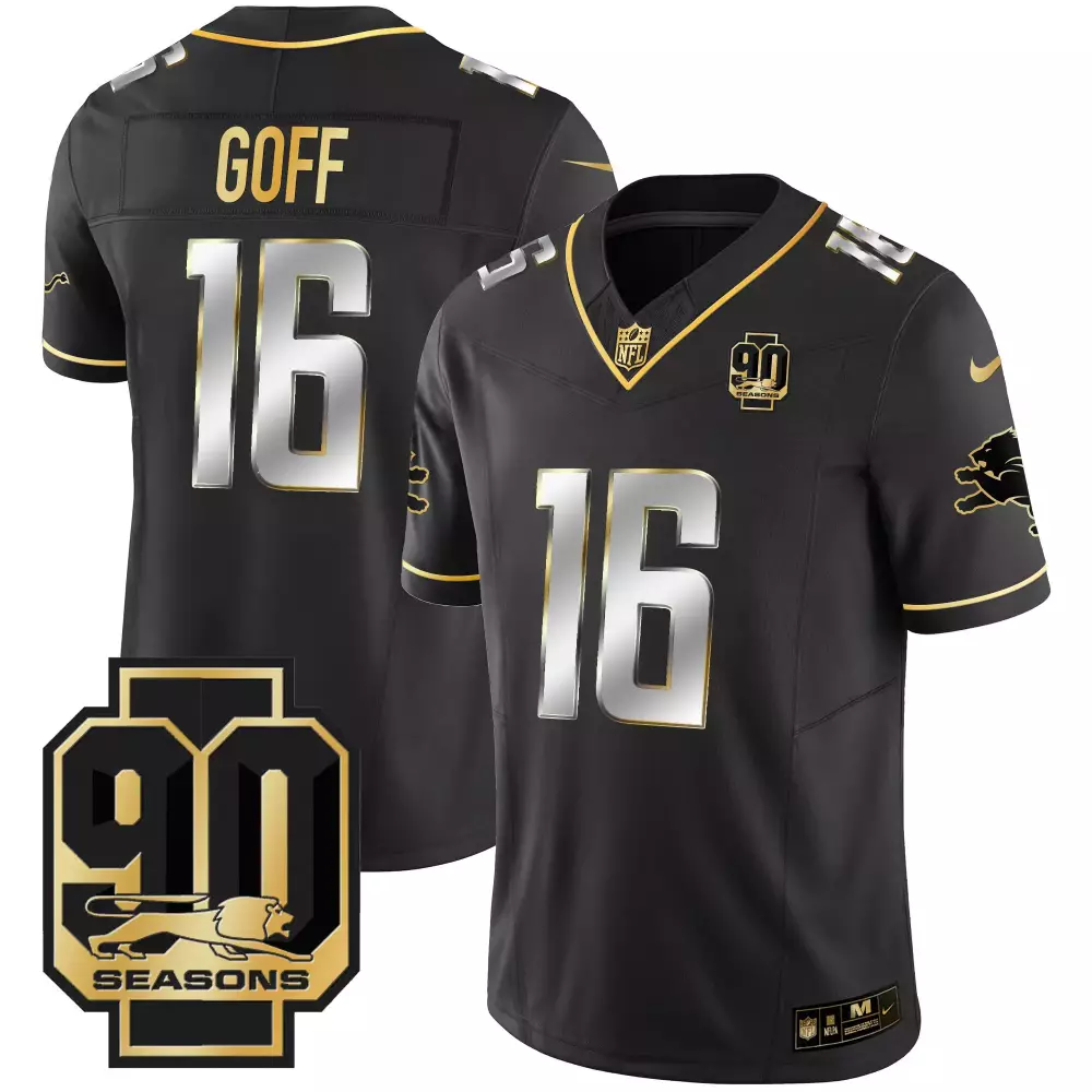 Goff 16 Detroit Lions Black Stitched Jersey | 90th Season Name Patch | 2025 Edition | Game Day Outfit | For Men, Women & Youth