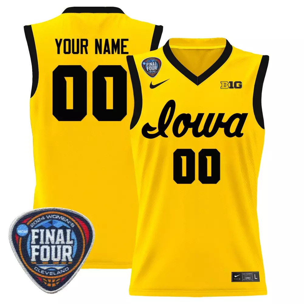 Gold Iowa Hawkeyes 2024 Women’s Final Four Basketball Jersey | Custom Stitched | For Youth | Fan Gear