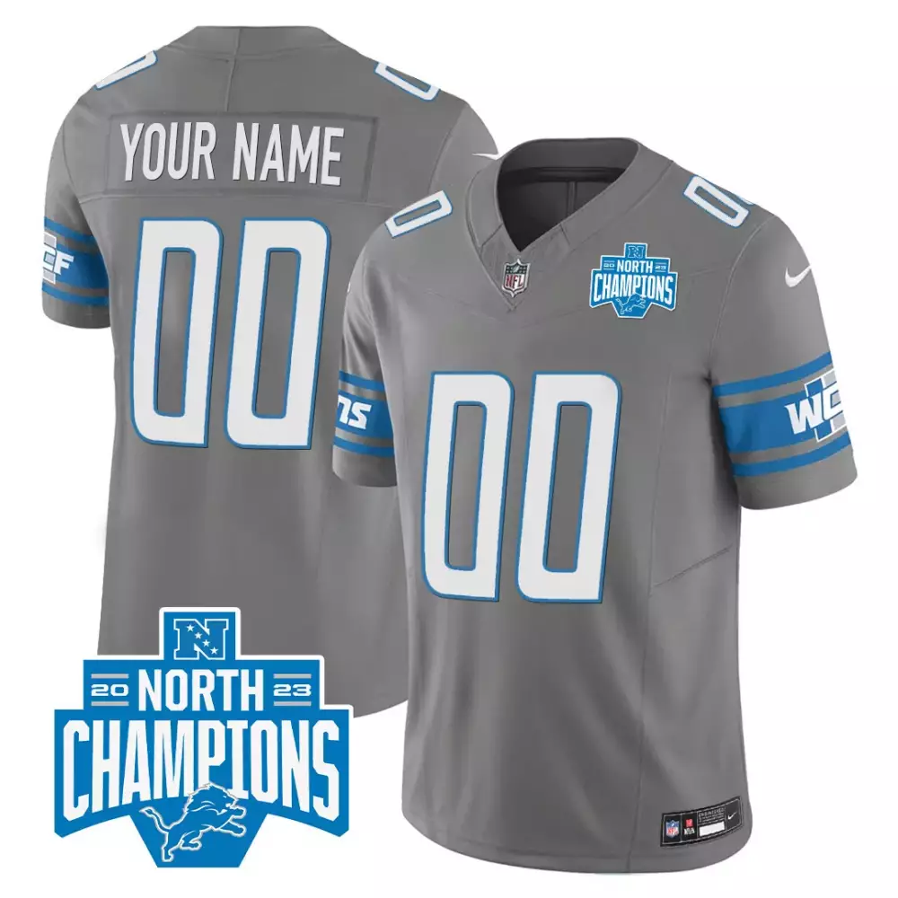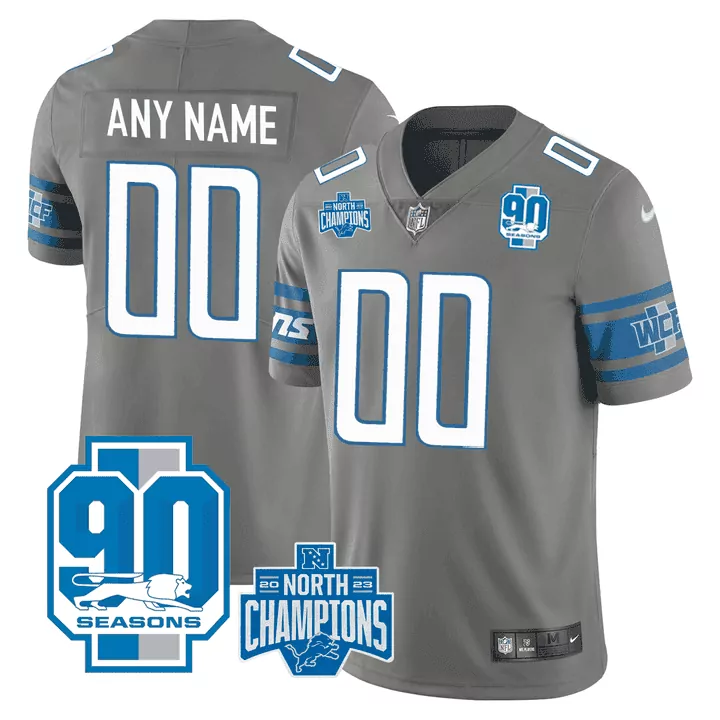 Gray Detroit Lions 2023 NFC North Division Champions 90th Year Patch Vapor Jersey | Custom Edition | All Stitched | For Men, Women & Youth