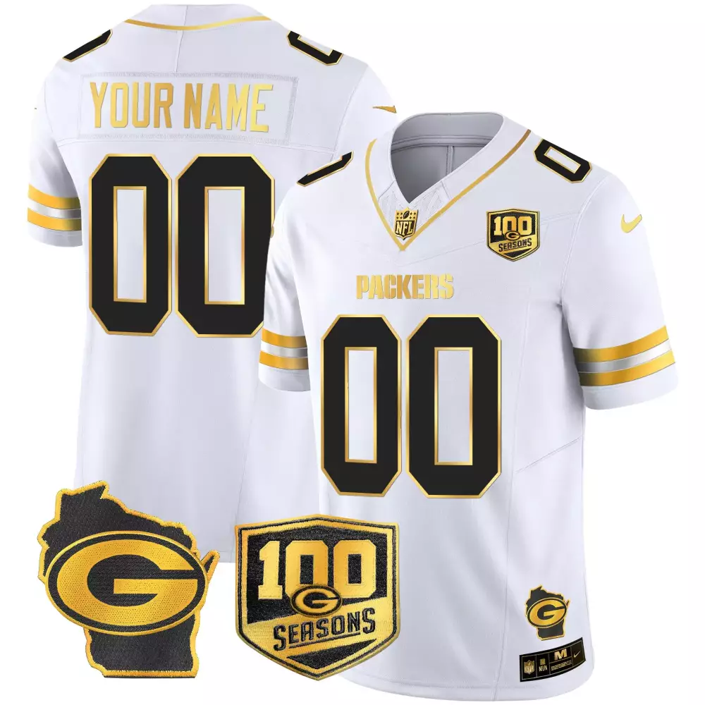 Green Bay Packers 100th Season Home Patch Vapor Limited Custom Jersey | All Stitched Style | For Men, Women & Youth | Gift Idea;Green Bay Packers 100th Season Vapor Limited Custom Jersey | Home Patch Design | Stitched Fan Gear for Men, Women & Youth;Green Bay Packers 100th Season Women’s Jersey | White Gold Stitched Vapor Limited Edition | For Women & Youth;Green Bay Packers 100th Season Youth Jersey | White Gold Stitched Vapor Limited Edition | For Youth;Green Bay Packers 13 Time World Champions Home Patch Game Custom Jersey | All Stitched Design | Fan Gear for Men, Women & Youth