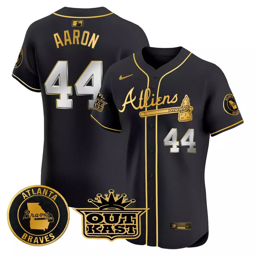 Hank Aaron Atlanta Braves AC/DC Jersey | Stitched Vapor Premier Limited Edition | Fan Gear for Men, Women & Youth;Hank Aaron Atlanta Braves Armed Forces Day Jersey | Stitched Vapor Premier Limited Edition | Fan Gear for Men, Women & Youth;Hank Aaron Atlanta Braves Armed Forces Day Jersey | Vapor Premier Limited Edition | Stitched Fan Gear | For Men, Women & Youth;Hank Aaron Atlanta Braves Armed Forces Day Vapor Premier Limited Jersey | Red Stitched Fan Gear | For Men, Women & Youth;Hank Aaron Atlanta Braves ATLiens Black Gold Elite Jersey | Vapor Premier Style | Fan Gear for Men, Women & Youth