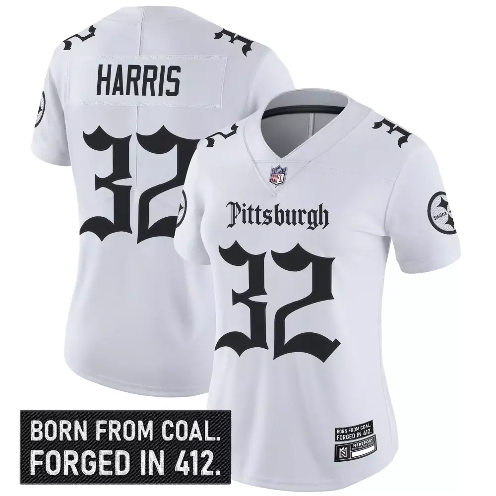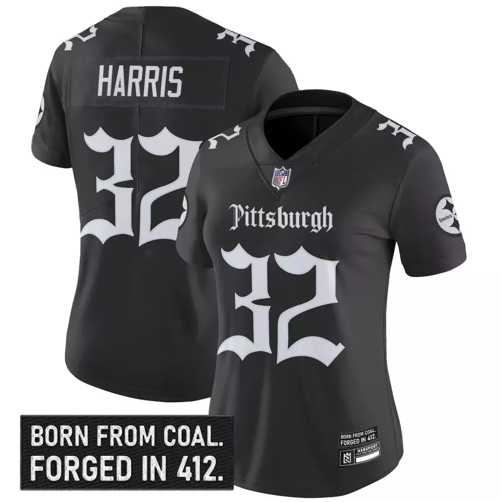 Harris 32 Women’s Vapor Jersey | Pittsburgh Steelers Black Stitched 2023 Born From Coal Edition | Fan Gear for Game Day | For Men, Women & Youth