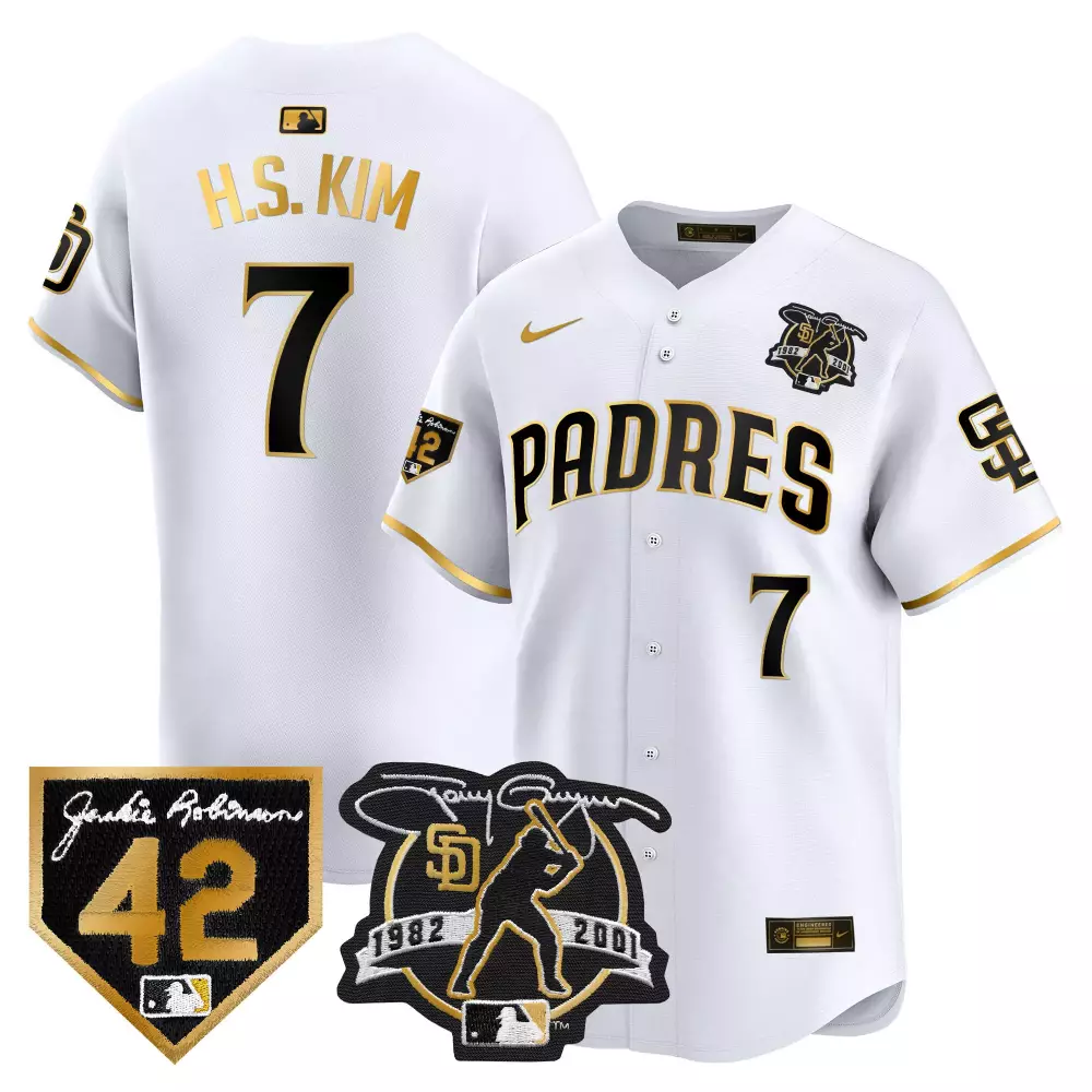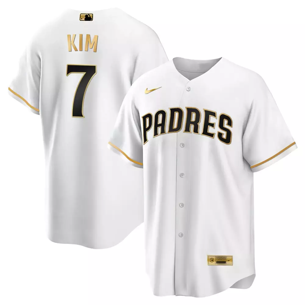 Haseong Kim 2024 Spring Training Padres Jersey | White Gold Style | For Men, Women & Youth;Haseong Kim 2024 Tony Gwynn Patch Padres Jersey | White Gold Style | For Men, Women & Youth;Haseong Kim Black Limited Gold Padres Jersey | Flex White Gold Style | For Men, Women & Youth;Haseong Kim Limited Edition Black Gold Padres Jersey | Cool White Gold Style | For Men, Women & Youth;Jake Cronenworth Black Limited Gold Padres Jersey | Cool White Gold Style | For Men, Women & Youth
