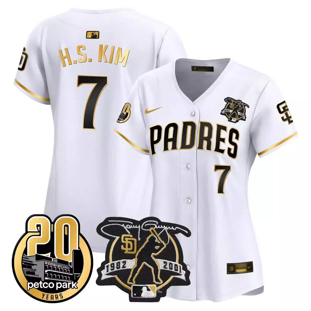 Haseong Kim 2024 Spring Training Padres Jersey | White Gold Style | For Men, Women & Youth