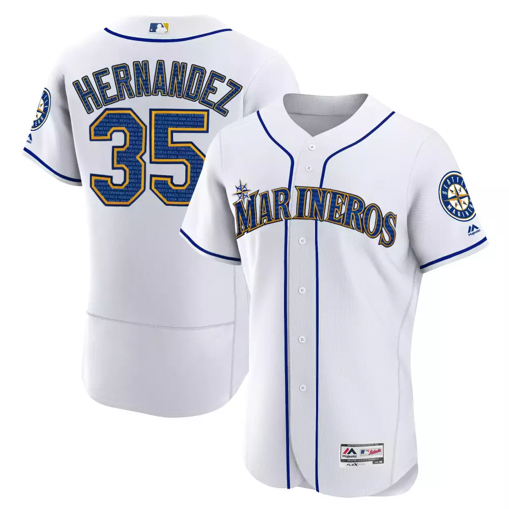 Heim Mariners 2023 All-Star Game Teal Jersey | Royal Stitched | Fan Gear for Women & Youth;Hernandez 35 Mariners White Hispanic Heritage All Stitched Vapor Jersey | 2023 | Celebrate Diversity Fan Gear | For Men, Women & Youth;Hernandez Mariners 2023 City Connect Gold Jersey | Stitched Cool White & Gold Fan Gear | For Men, Women & Youth;Hernandez Mariners 2023 City Connect Gold Jersey | Stitched Cool White & Gold Fan Gear | For Men, Women & Youth;Hernandez Mariners 2023 City Connect Gold Jersey | Stitched Flex White & Gold Fan Gear | For Men, Women & Youth