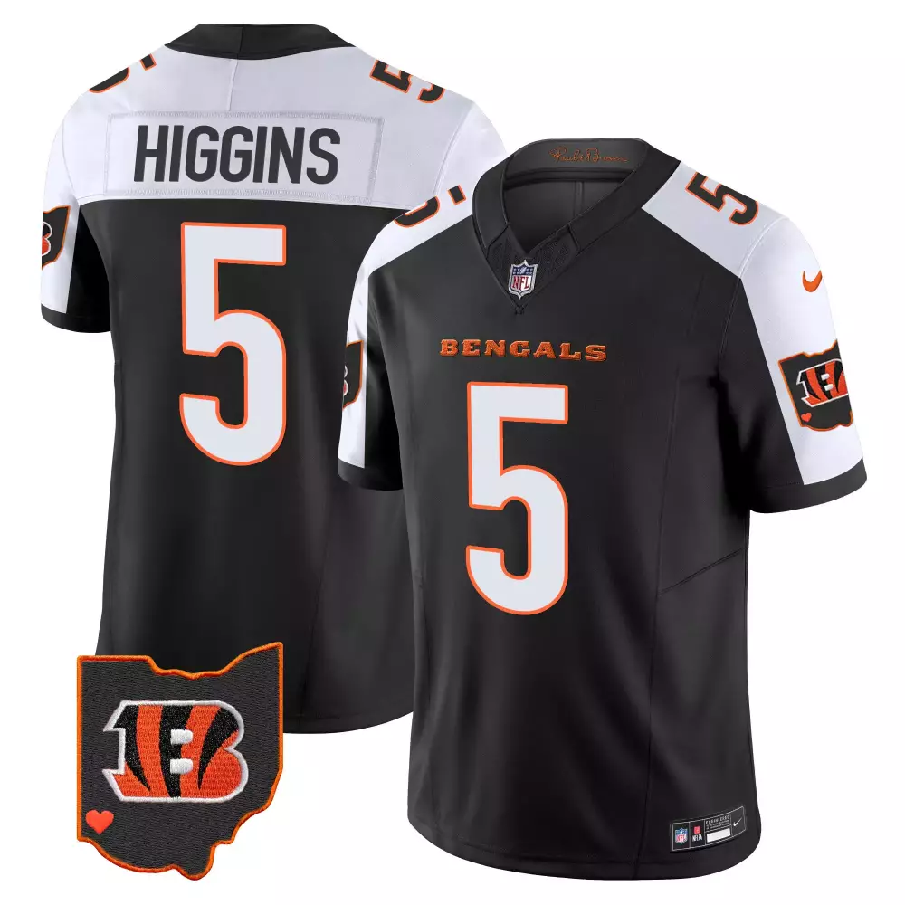 Higgins 5 Cincinnati Bengals 2023 Men’s Black Stitched Jersey | Name Patch | Fan Gear for Men, Women & Youth