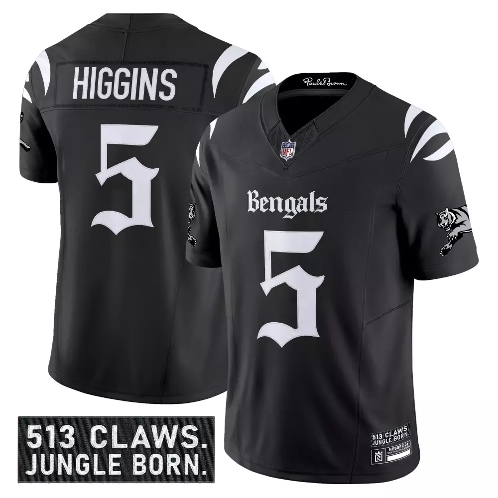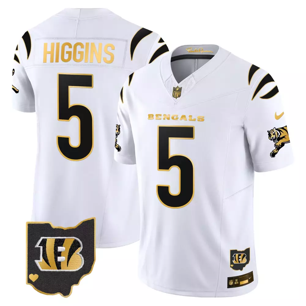 Higgins 5 Cincinnati Bengals 2023 Women’s Vapor Jersey | White with Ohio Patch | Stitched Fan Gear for Men, Women & Youth;Higgins 5 Cincinnati Bengals 2024 White Stitched Jersey | Name Patch Fan Gear | For Men, Women & Youth;Higgins 5 Cincinnati Bengals 2024 Women’s White Vapor Limited Jersey | All Stitched Fan Gear for Men, Women & Youth;Higgins 5 Cincinnati Bengals Black Stitched Jersey | 513 Claws Patch | Game Day Outfit for Men, Women & Youth;Higgins 5 Cincinnati Bengals Women’s Black Stitched Jersey | 2023 Limited Edition Name Patch | Fan Gear for All