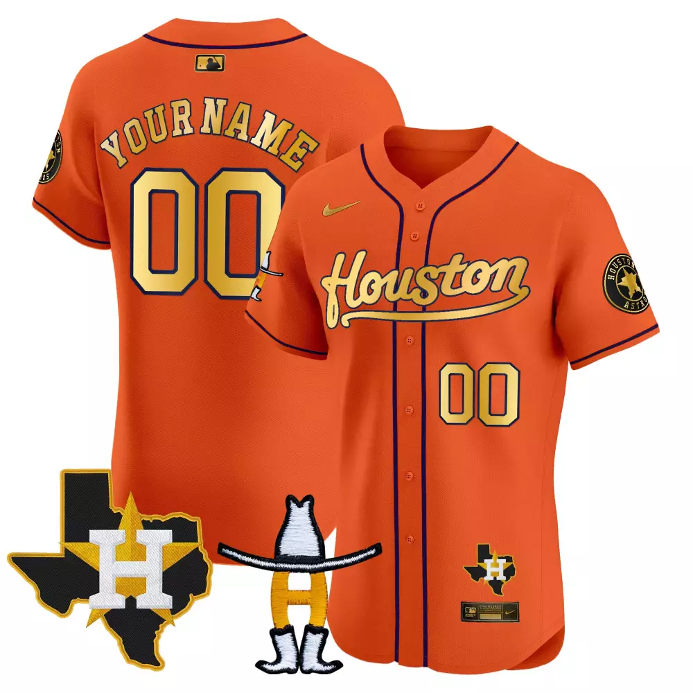 Houston Rodeo Patch Houston Astros 2024 Custom Jersey V2 | Orange Gold Vapor Premier Limited | Fan Gear for Game Day | For Men, Women & Youth