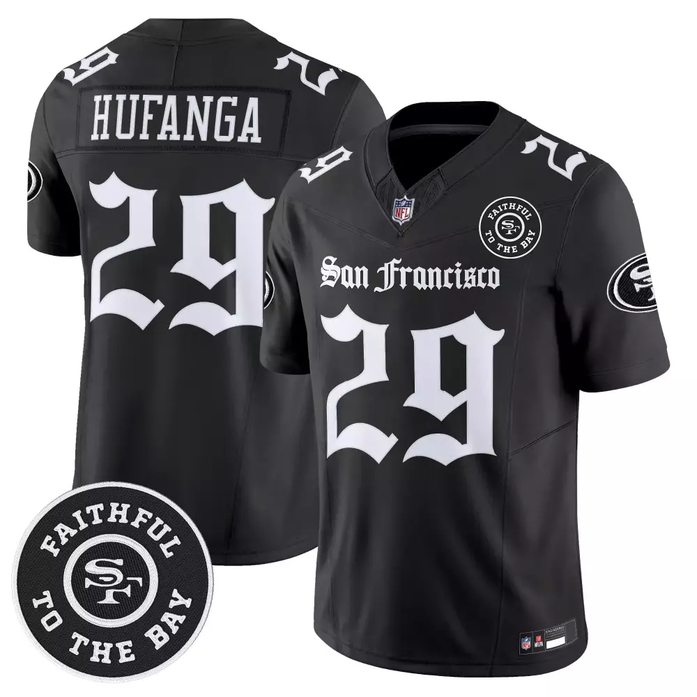 Hufanga 29 Men’s Stitched Vapor Jersey | 49ers Black Limited Edition 2023 | For Men, Women & Youth;Hufanga 29 Men’s Stitched Vapor Jersey | 49ers Independence Day 2025 | For Men, Women & Youth;Hufanga 29 Men’s Stitched Vapor Jersey | 49ers Independence Day 2025 Blue | For Men, Women & Youth;Hufanga 29 Men’s Stitched Vapor Jersey | 49ers White Black Forged in the Fog Edition 2023 | For Men, Women & Youth;Hufanga 29 Men’s Vapor Jersey | 49ers Black Stitched Faithful to the Bay Patch 2023 | For Men, Women & Youth