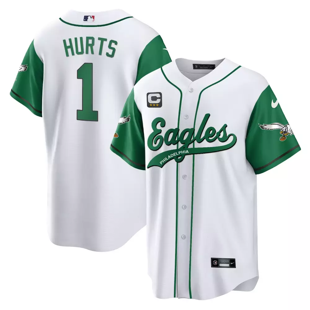 Hurts 1 Philadelphia Eagles Kelly Green Baseball Jersey | 2023 All Stitched Name Patch | Limited Edition | For Men, Women & Youth