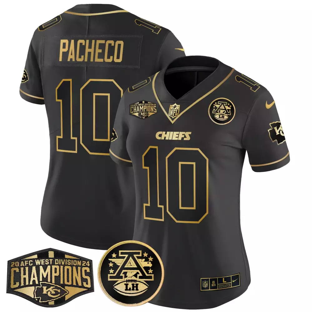 Isiah Pacheco Kansas City Chiefs 2024 AFC West Champions Gold Vapor Jersey | Stitched Limited Edition | For Women | Gift Idea