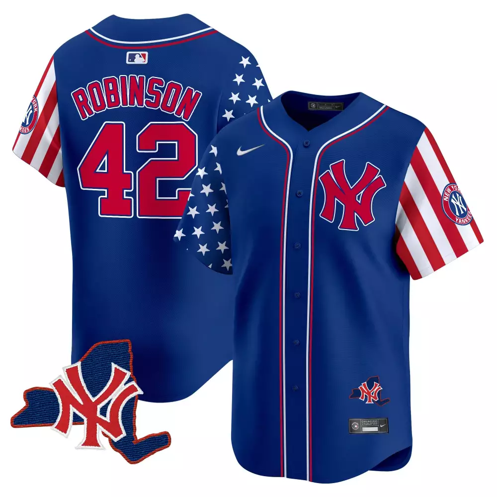 Jackie Robinson Royal Yankees 2024 Fourth of July Jersey V8 | Vapor Premier Limited Edition | Stitched Fan Gear | For Men, Women & Youth;Jackie Robinson Royal Yankees 2024 Independence Day Jersey | Vapor Premier Limited Edition | Stitched Fan Gear | For Men, Women & Youth;Jackie Robinson Royal Yankees 2024 Independence Day Jersey V2 | Vapor Premier Limited Edition | Stitched Fan Gear | For Men, Women & Youth;Jackie Robinson Royal Yankees 2024 Make America Great Again Jersey | Vapor Premier Limited Edition | Stitched Fan Gear | For Men, Women & Youth;Jackie Robinson Royal Yankees 2024 World Series Jersey | American Style Vapor Premier Limited Edition | Stitched Fan Gear | For Men, Women & Youth