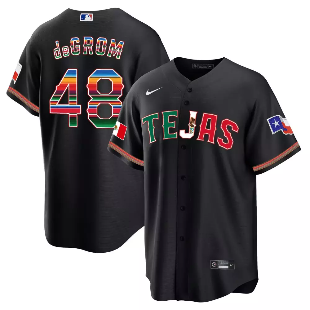 Jacob Degrom Texas Rangers Black Mexican Heritage Night Cool Base Jersey Tejas | All Stitched | Gift Idea for Men, Women & Youth