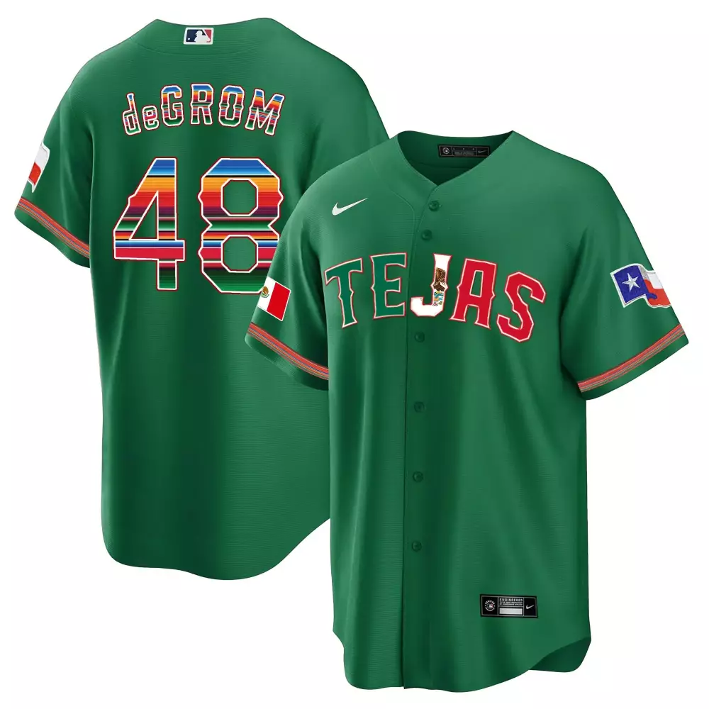 Jacob Degrom Texas Rangers Mexican Heritage Night Cool Base Jersey Tejas | Flex Green Stitched | Limited Edition Fan Gear | For Men, Women & Youth;Jacob DeGrom Texas Rangers Mexican Heritage Night Cool Base Jersey Tejas | Stitched Fan Gear | For Men, Women & Youth;Jacob Degrom Texas Rangers Mexican Heritage Night Jersey | Stitched Fan Gear | For Men, Women & Youth;Jacob Degrom Texas Rangers Mexican Jersey | Flex Green Stitched | Replica Fan Gear | For Women | For Men, Women & Youth;Jacob Degrom Texas Rangers Mexican Red Collection Jersey | Stitched Fan Gear | For Men, Women & Youth