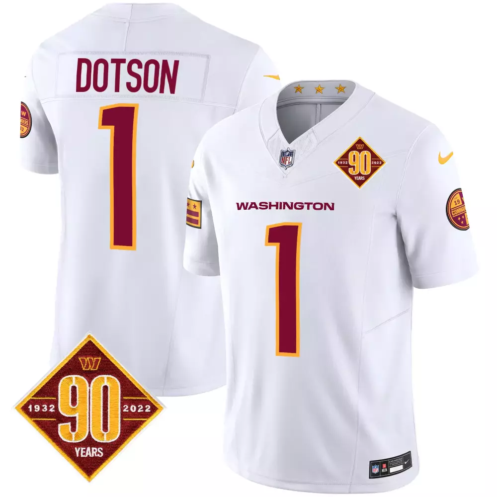 Jahan Dotson Washington Commanders 90th Anniversary Vapor Jersey V2 | White Stitched Women’s Fan Gear | For Women & Youth;Jahan Dotson Washington Commanders 90th Anniversary Vapor Jersey V3 | White Stitched Fan Gear | For Men, Women & Youth;Jahan Dotson Washington Commanders 90th Anniversary Vapor Limited Jersey | White Stitched Fan Gear | For Men, Women & Youth;Jahan Dotson Washington Commanders Big & Tall Burgundy Legacy Jersey | Stitched Edition | Fan Gear for Men, Women & Youth;Jahan Dotson Washington Commanders Big Tall Legacy Jersey | White Stitched Fan Gear | For Men, Women & Youth