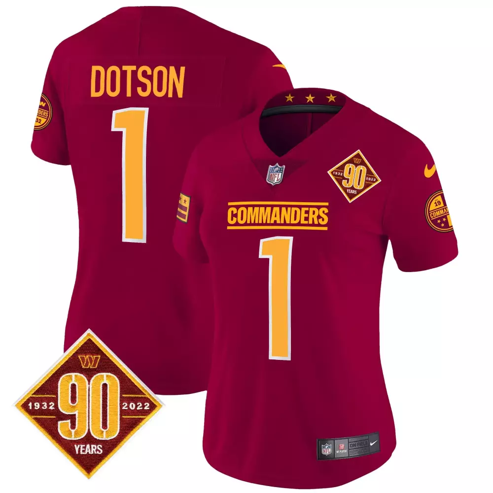 Jahan Dotson Washington Commanders Burgundy Men’s Limited Jersey | Stitched Vapor Edition | 90th Anniversary Fan Gear for Men, Women & Youth;Jahan Dotson Washington Commanders Burgundy Women’s Jersey | Stitched Vapor Edition | 90th Anniversary Fan Gear for Women & Youth;Jahan Dotson Washington Commanders Burgundy Women’s Jersey V2 | Stitched Vapor Edition | 90th Anniversary Fan Gear for Women & Youth;Jahan Dotson Washington Commanders DC Map Patch Jersey | White Stitched Fan Gear | For Men, Women & Youth;Jahan Dotson Washington Commanders Nike Alternate Game Jersey | Black Stitched Edition | Fan Gear for Men, Women & Youth