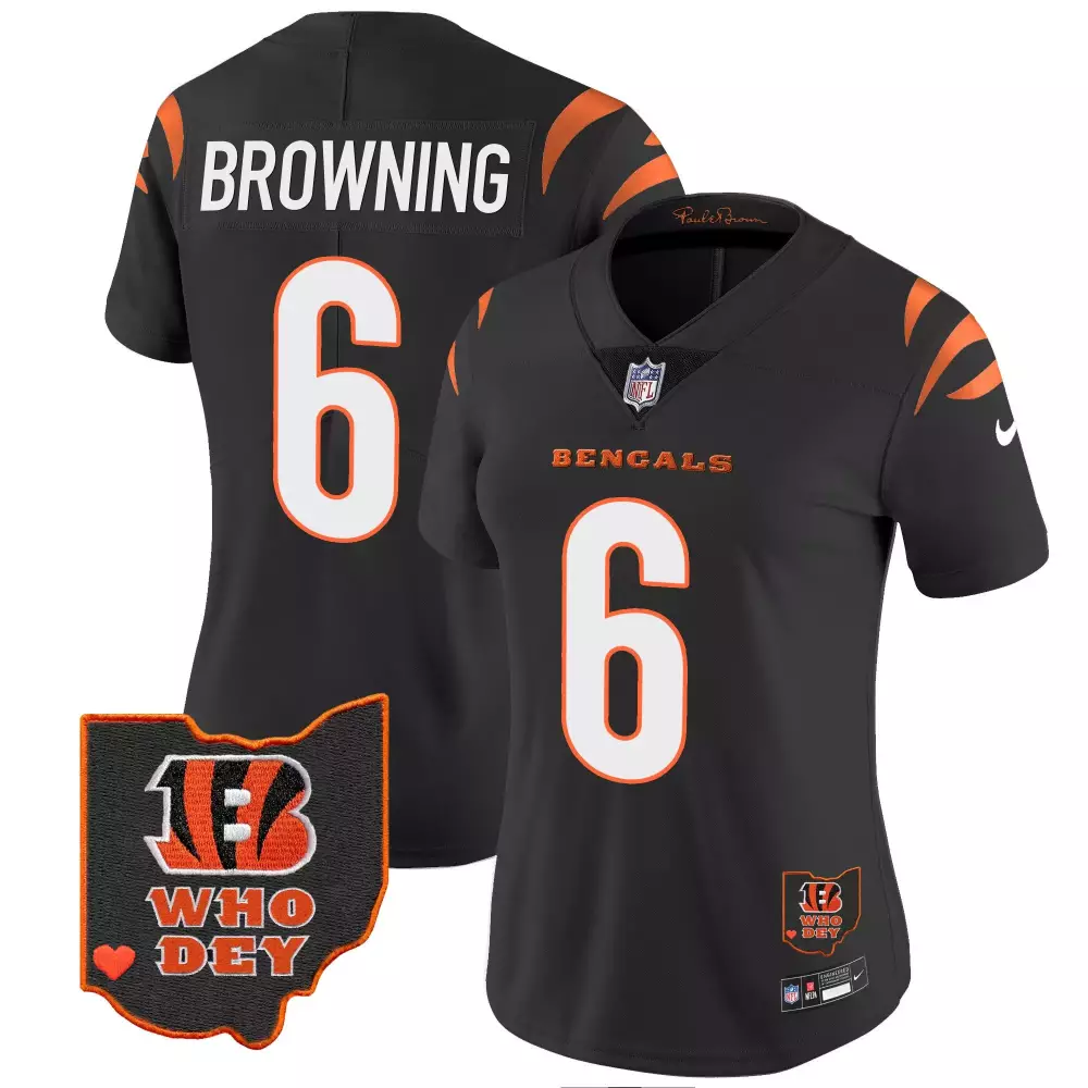 Jake Browning Black Women’s Cincinnati Bengals Special Vapor Limited Jersey | All Stitched Fan Gear | Perfect Gift for NFL Fans | For Men, Women & Youth;Jake Browning Black Women’s Cincinnati Bengals Stripes Vapor Limited Jersey | All Stitched Fan Gear | Stylish Game Day Outfit | For Men, Women & Youth;Jake Browning Black Women’s Cincinnati Bengals Vapor Limited Jersey | All Stitched Ohio Patch | Fan Gear for Game Day | For Men, Women & Youth;Jake Browning Black Women’s Cincinnati Bengals Vapor Premier Limited Jersey | All Stitched Fan Gear | Perfect for Game Day | For Men, Women & Youth;Jake Browning Cincinnati Bengals 2024 Black Gold Vapor Limited Jersey | Stitched Design for Men, Women & Youth | Fan Gear