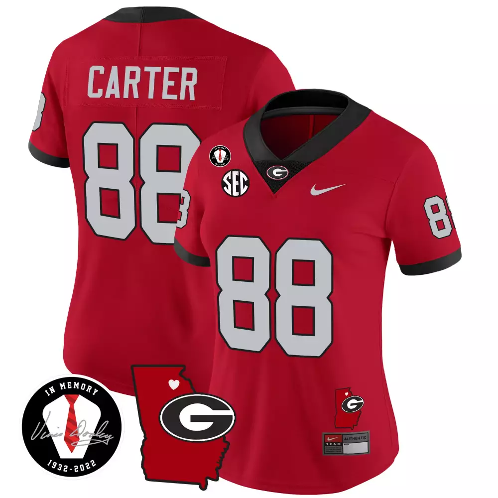 Jalen Carter Georgia Bulldogs 2023 Split Red White Jersey | Stitched Champions Design | Fan Gear for Men, Women & Youth;Jalen Carter Georgia Bulldogs 2023 Split Red White Jersey | Vince Dooley Patch | Stitched Fan Gear for Men, Women & Youth;Jalen Carter Georgia Bulldogs 2023 Vapor Jersey | Georgia Map Design | Stitched Fan Gear for Men, Women & Youth;Jalen Carter Georgia Bulldogs 2023 Vapor Jersey V3 | Georgia Map | Stitched Fan Gear for Men, Women & Youth;Jalen Carter Georgia Bulldogs 2023 Vapor Jersey V4 | Georgia Map | Stitched Fan Gear for Men, Women & Youth