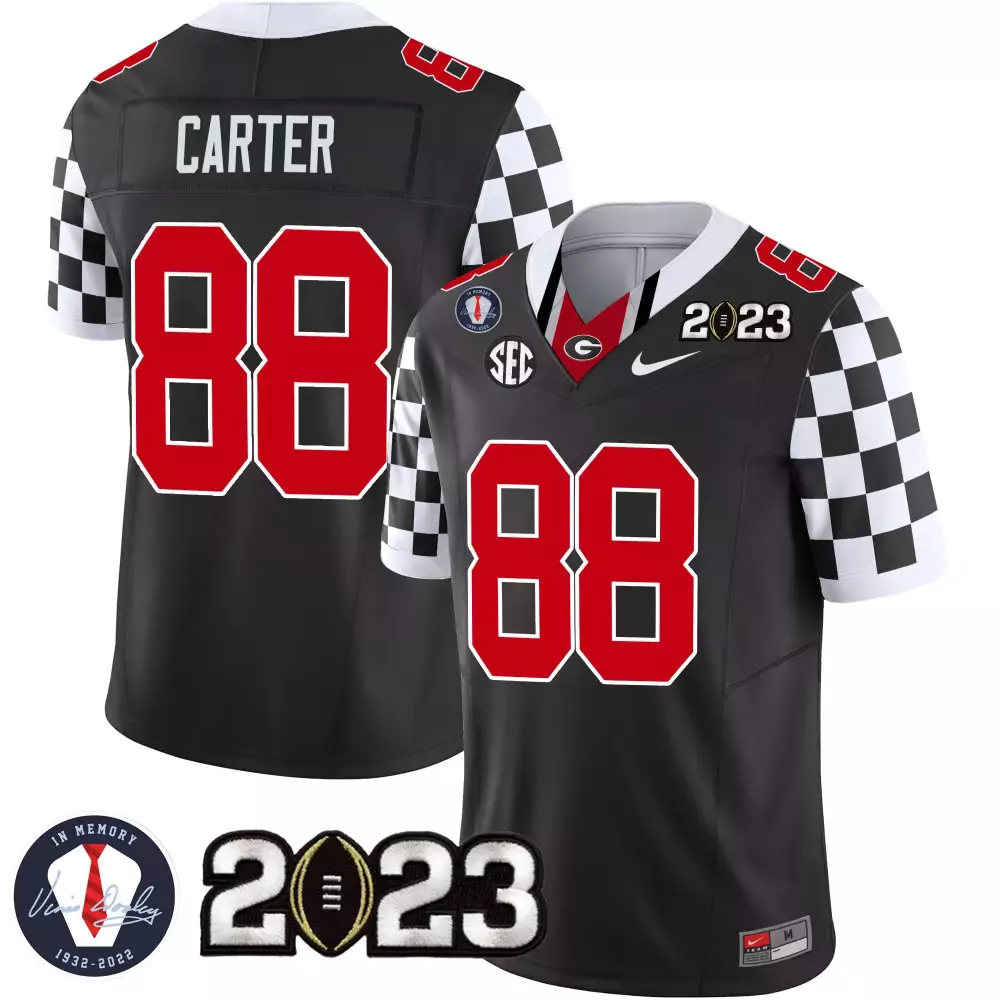 Jalen Carter Georgia Bulldogs Black Limited Jersey | 2023 Vince Dooley Patch Alternate Gold | Stitched Fan Gear for Men, Women & Youth;Jalen Carter Georgia Bulldogs Black Limited Jersey | Checkerboard Design | Stitched Fan Gear for Men, Women & Youth;Jalen Carter Georgia Bulldogs Black Limited Youth Jersey | 2023 Champions Edition | Stitched Fan Gear for Men, Women & Youth;Jalen Carter Georgia Bulldogs Black Men’s Jersey | 2023 Champions Alternate Design | Stitched Fan Gear for Men, Women & Youth;Jalen Carter Georgia Bulldogs Black Men’s Jersey | 2023 Champions Edition | Stitched Fan Gear for Men, Women & Youth