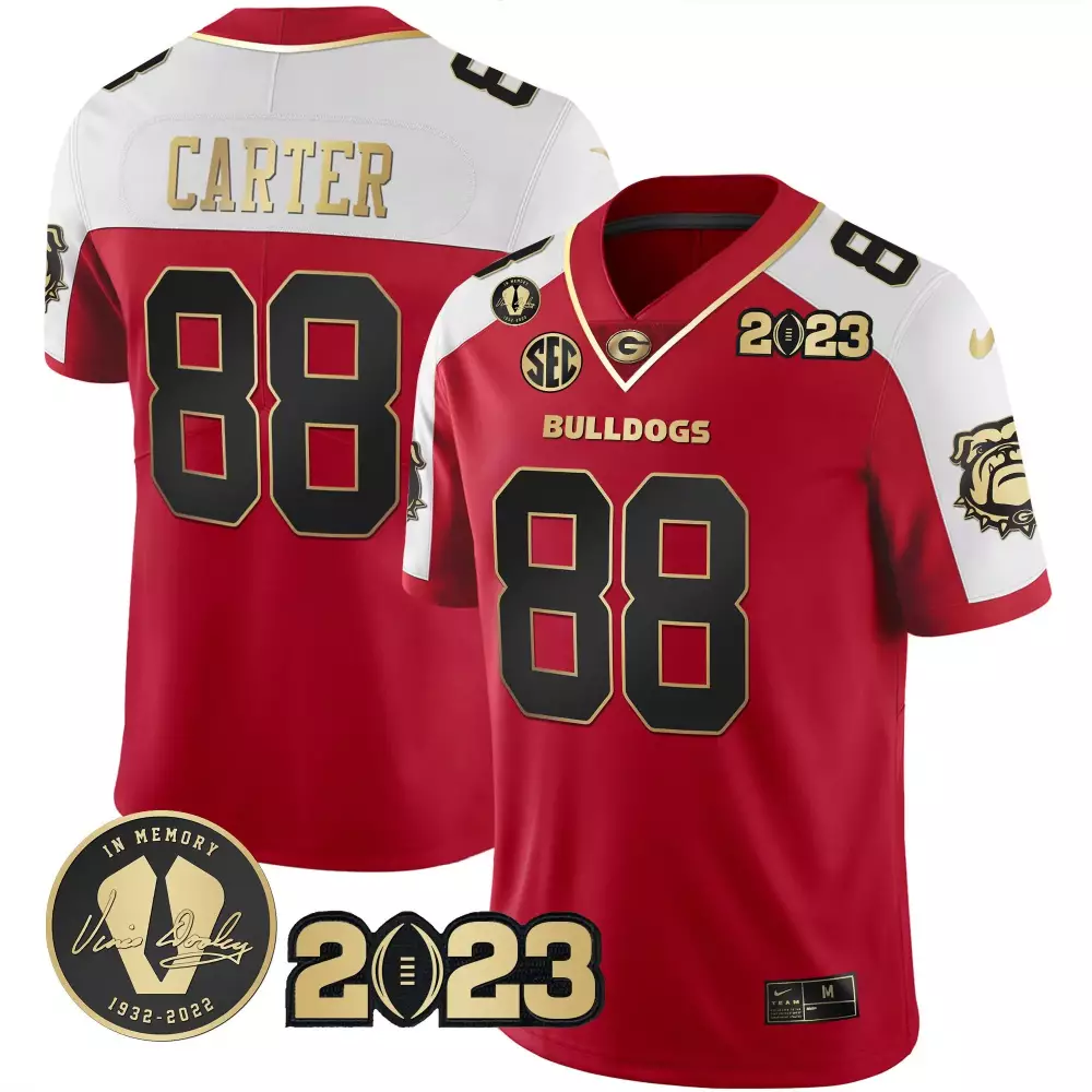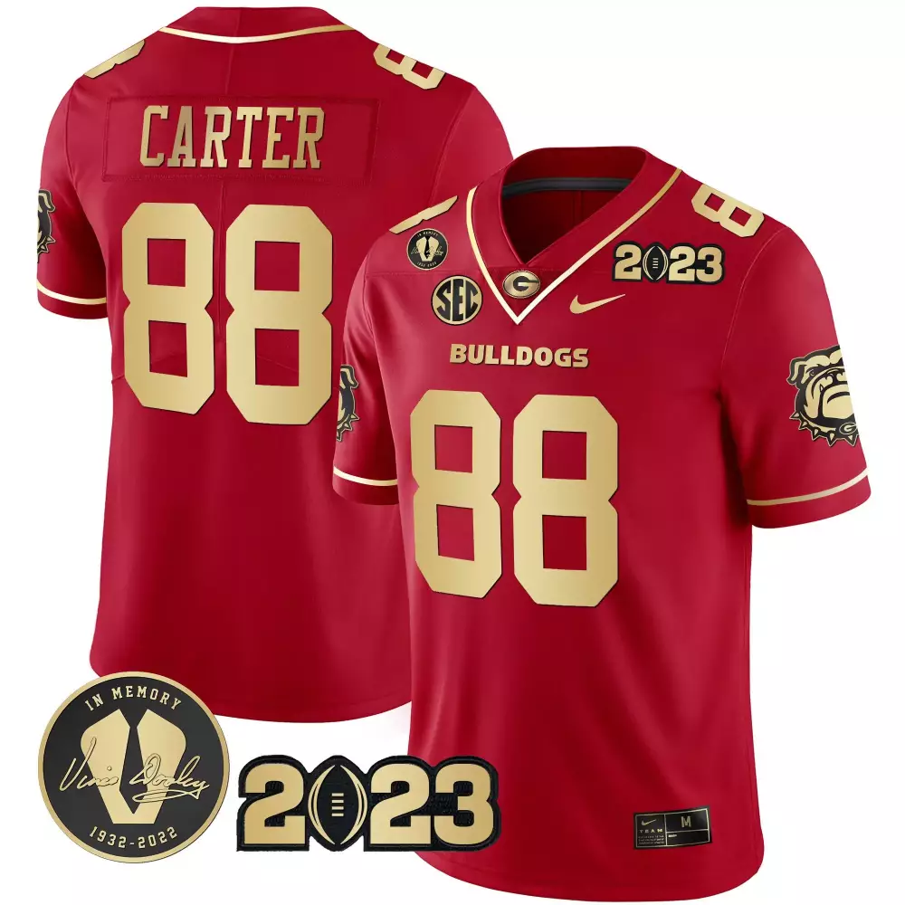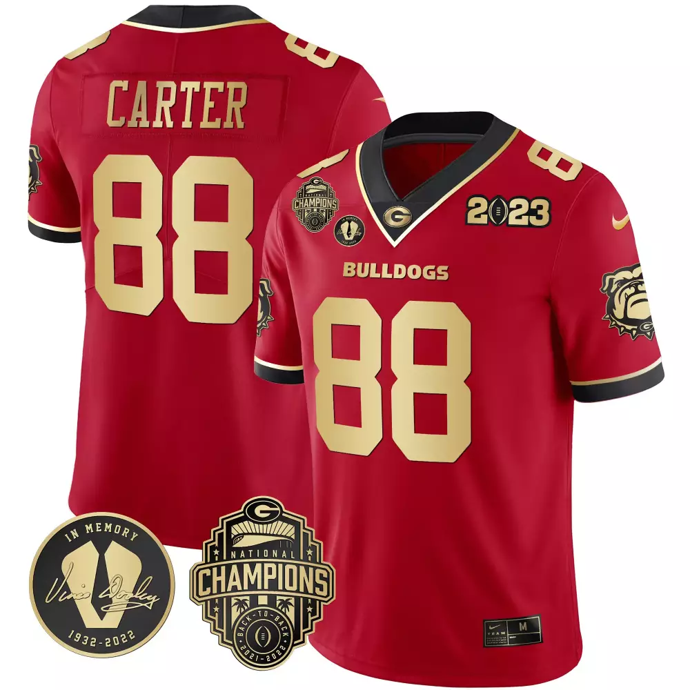 Jalen Carter Georgia Bulldogs Black Women’s Jersey | 2023 Champions Edition | Stitched Fan Gear for Men, Women & Youth;Jalen Carter Georgia Bulldogs CFP National Champions Jersey | Stitched Design | Fan Gear for Men, Women & Youth;Jalen Carter Red & Gold 2023 Champions Alternate Jersey | All Stitched | Limited Edition Fan Gear for Men, Women & Youth;Jalen Carter Red & Gold 2023 Champions V2 Jersey | All Stitched | Replica Fan Gear for Men, Women & Youth;Jalen Carter Red & Gold 2023 Champions Vince Dooley Patch Jersey | All Stitched | Limited Edition Fan Gear for Men, Women & Youth